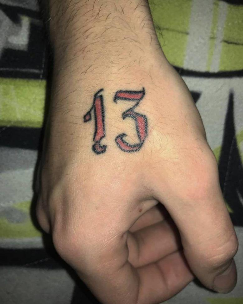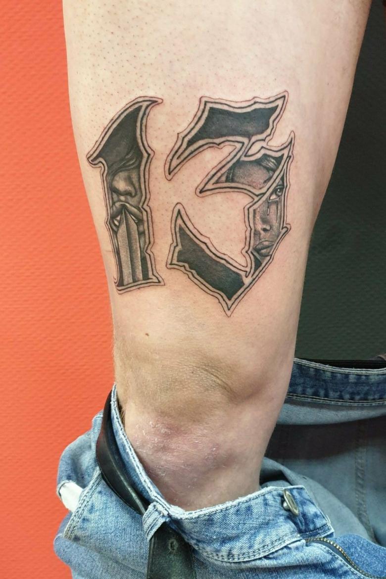 La signification du tatouage "13" est que le propriétaire méprise les superstitions. C'est-à-dire que sa propre croyance en sa chance est suffisante. Et il le déclare ouvertement à son entourage.