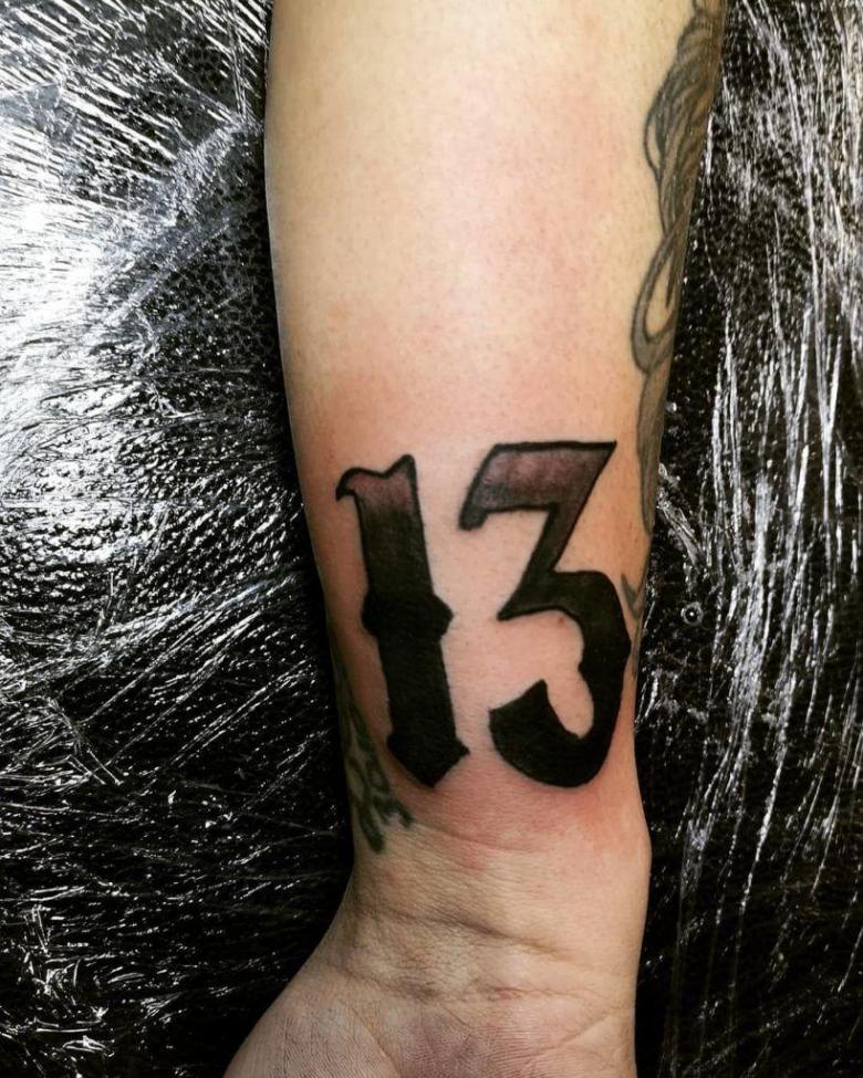 Les amateurs de tatouage de chiffres sont nombreux, en particulier le tatouage du chiffre "13". Nous devons dire, l'attitude à la combinaison des numéros aux différentes nations. De plus, tous les gens ne sont pas superstitieux. Ils ne se font donc tatouer que pour des raisons esthétiques. Et les personnes à l'esprit mystique tamponnent leurs chiffres pour changer quelque chose à leur destin.