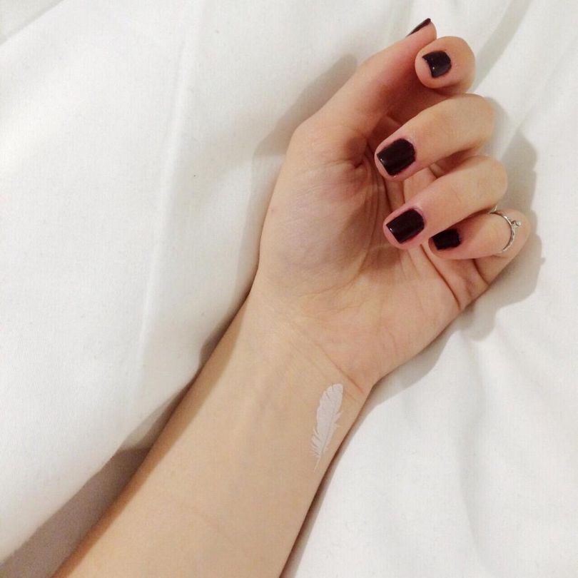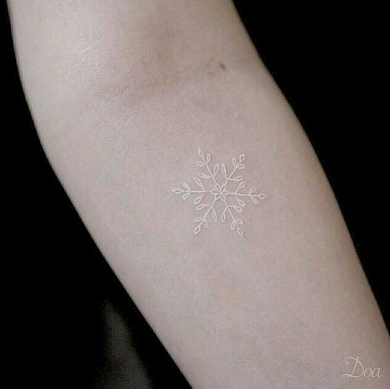 - De vrais artisans expérimentés dans le tatouage blanc vous conseilleront de belles idées, mais forcément liées à la tendance minimaliste. Ce style, composé de lignes fines et de petits détails insignifiants, convient aux tatouages blancs. Par conséquent, pour le beau sexe qui préfère l'abstraction ou les symboles minimalistes, cette option est idéale. Ceux qui veulent une image réaliste et envoûtante ne doivent pas essayer l'encre blanche.