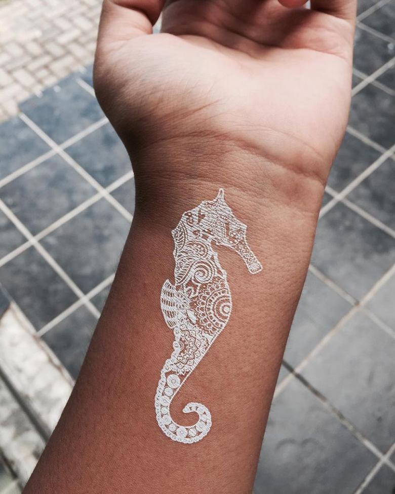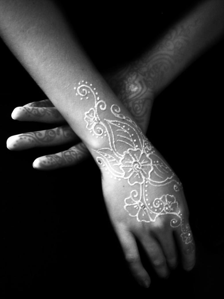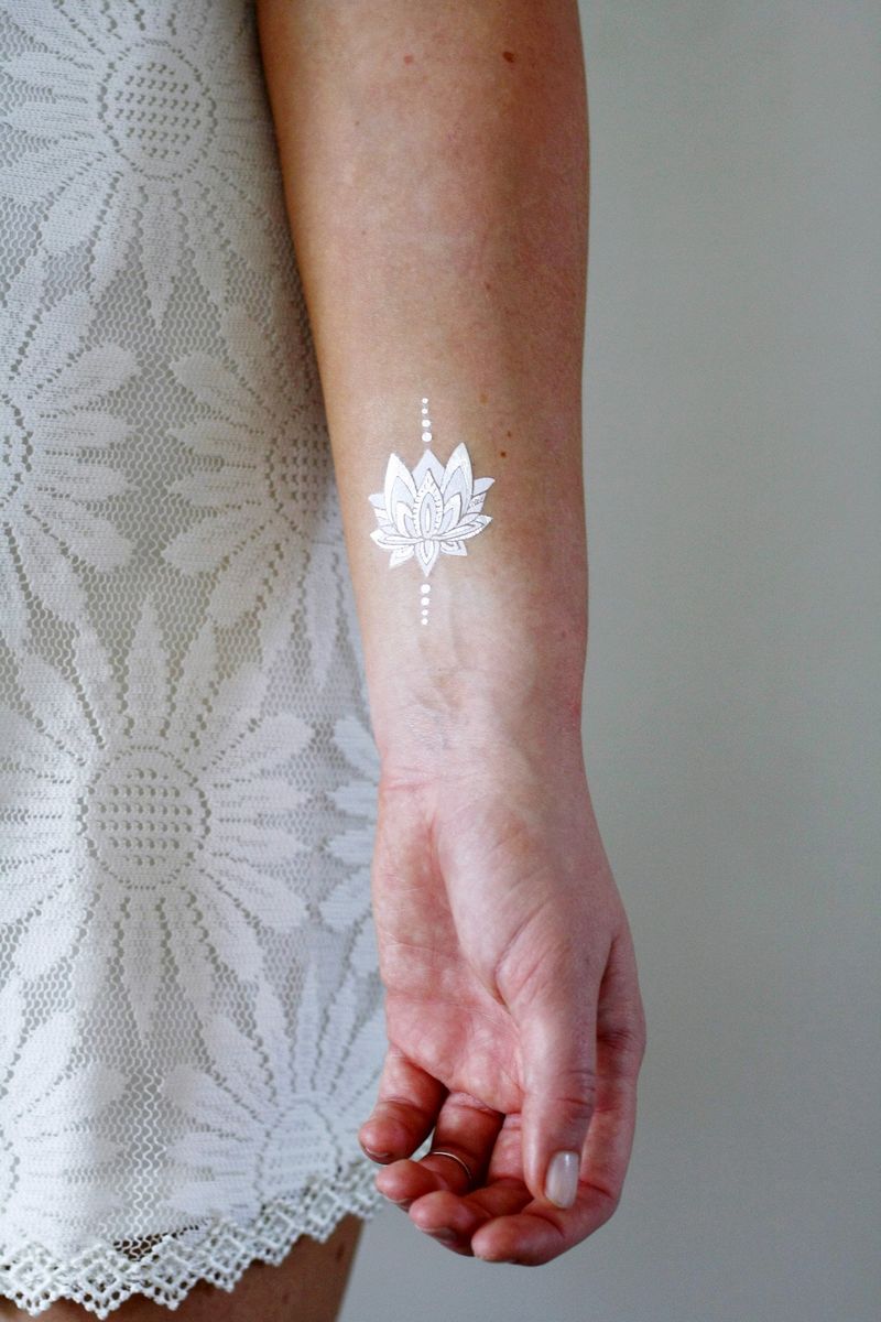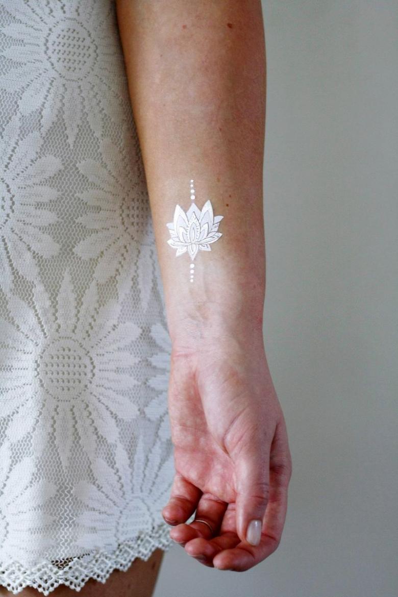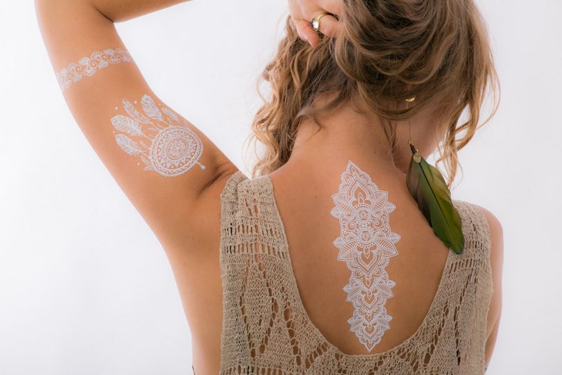 La dernière mode a pris la forme de tatouages blancs "subvertissant" tous les fondements et toutes les traditions. Ils sont tout aussi frappants que les tatouages noirs, bien qu'ils soient presque indiscernables de la couleur de votre peau. Ils attirent tout autant l'attention que ceux en couleur, même s'ils sont fabriqués avec de l'encre UV. Ils sont suffisamment sophistiqués pour surpasser tous les chefs-d'œuvre de l'art corporel traditionnel, quel que soit le style. Et ils sont modestes et discrets, comme une mariée devant l'autel.