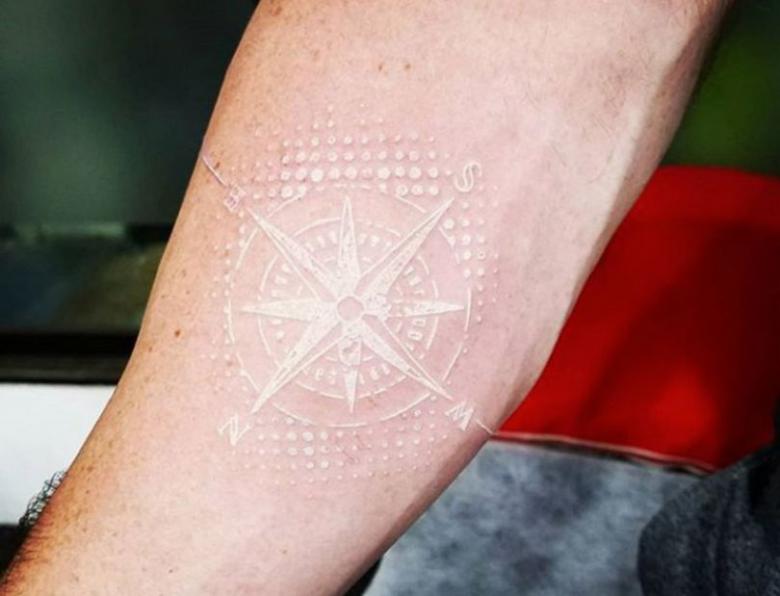 - Les attributs traditionnels des tatouages masculins - boussole, étoile à rayons, crâne, hiéroglyphes, runes - sont perçus de manière totalement nouvelle en blanc.