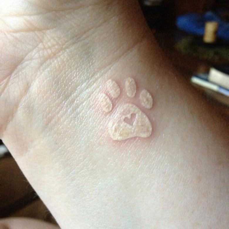 - Vous pouvez choisir comme base de l'intrigue la trace puissante d'un animal puissant - un ours, un loup, un lion. Une trace blanche sur un corps bronzé est un véritable chef-d'œuvre de tatouage.