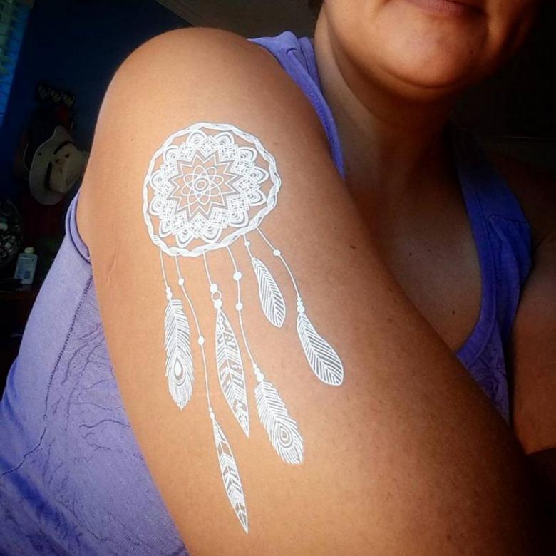 La vue d'un tatouage blanc apporte un sentiment de stérilité et de pureté. Les tatouages blancs conviennent à tout le monde, indépendamment du sexe et de l'année de naissance, ce qui est probablement leur principal avantage.