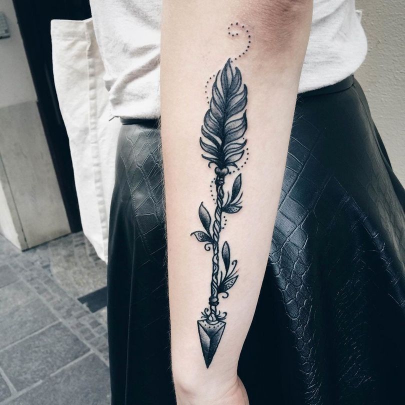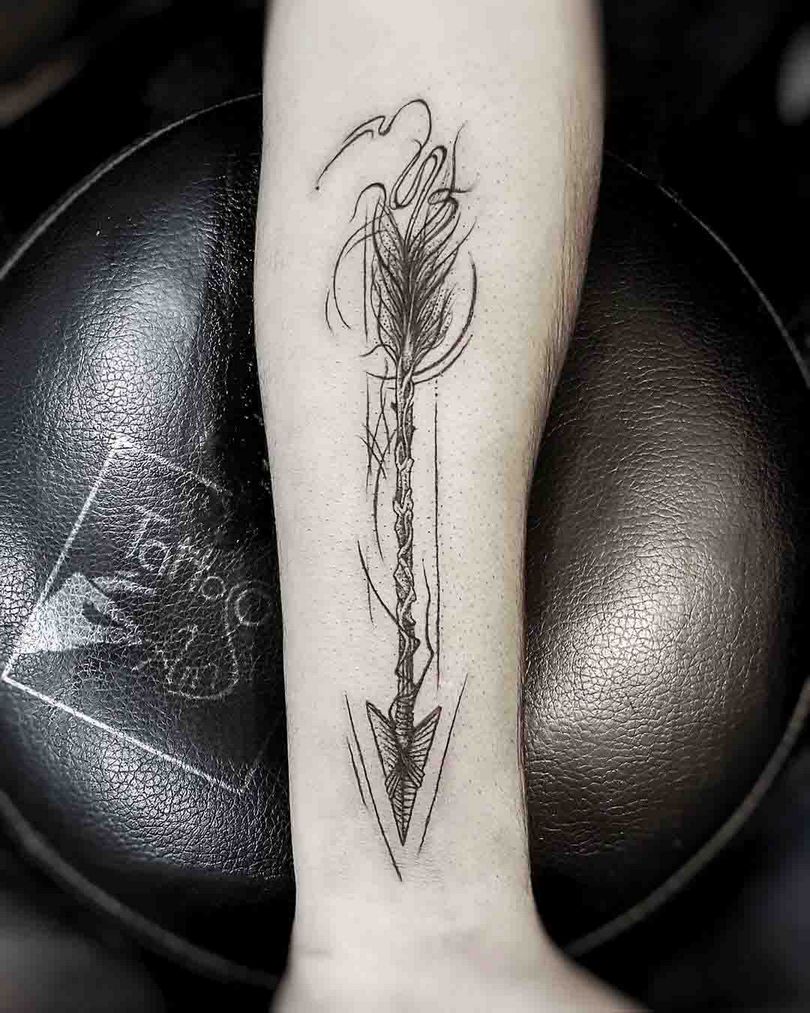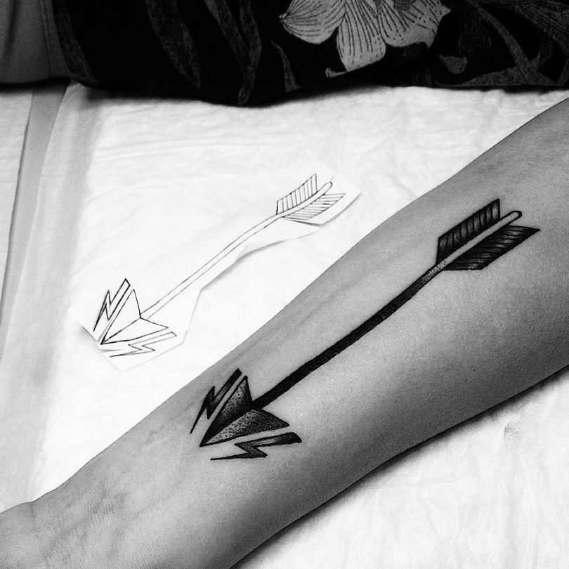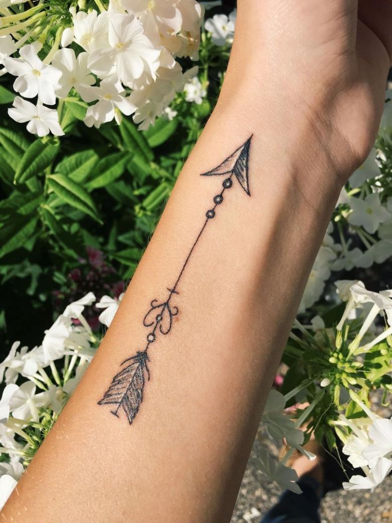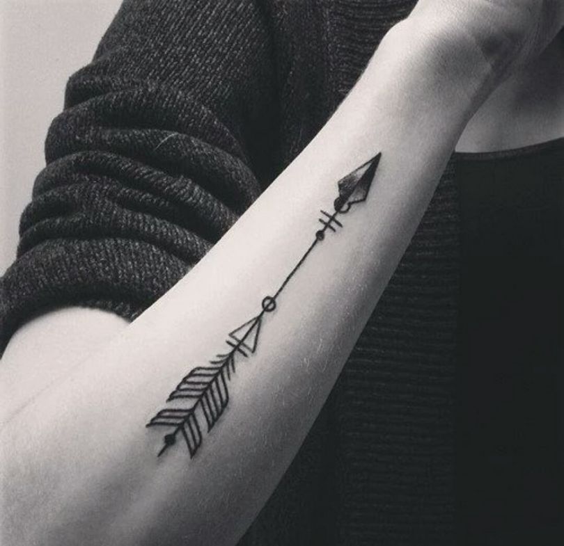 Татуировка със стрела - значение за момичета и мъже, мястото на приложение (на ръката, пръста, китката), творчески дизайн и фото идеи