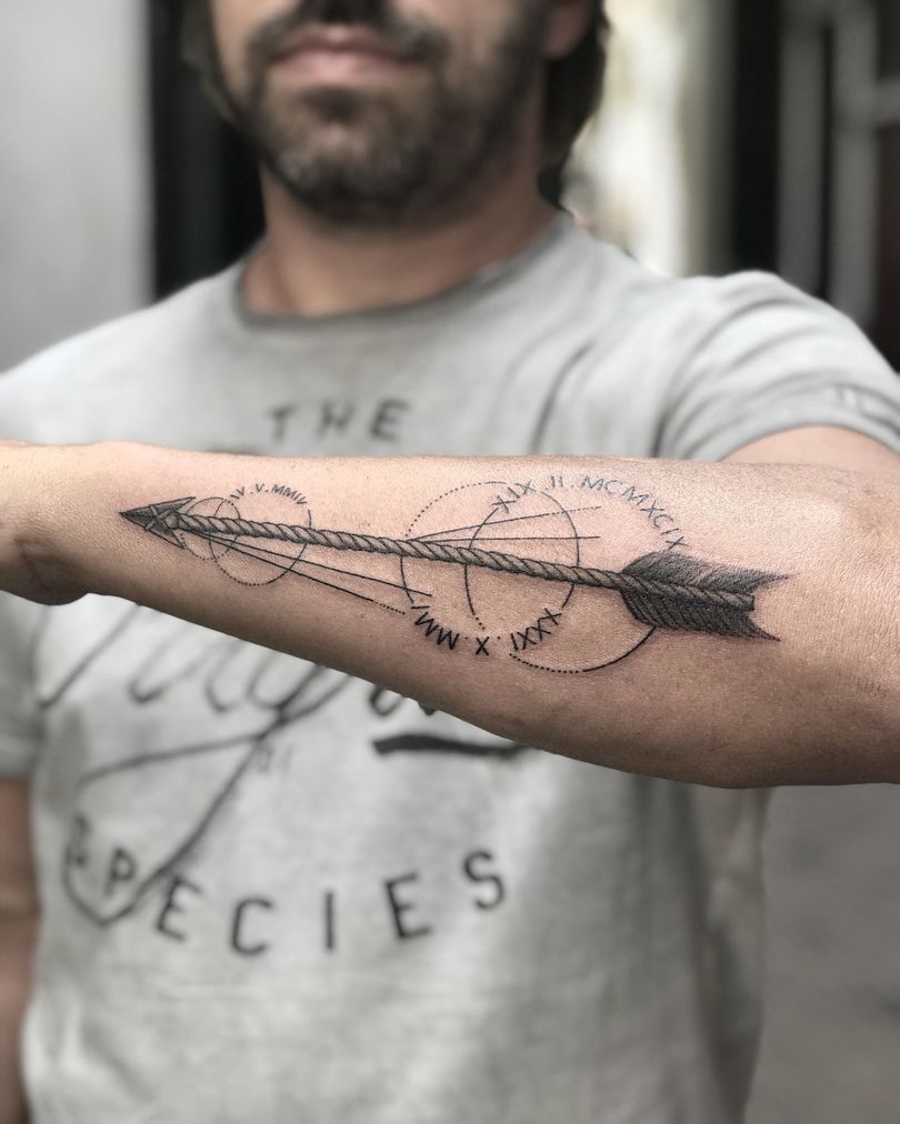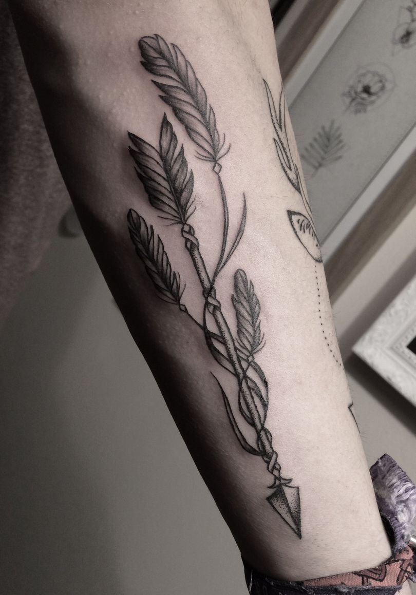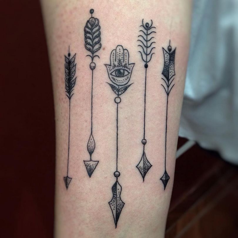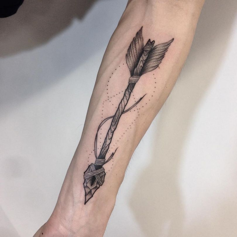 Татуировка със стрела - значение за момичета и мъже, мястото на приложение (на ръката, пръста, китката), творчески дизайн и фото идеи