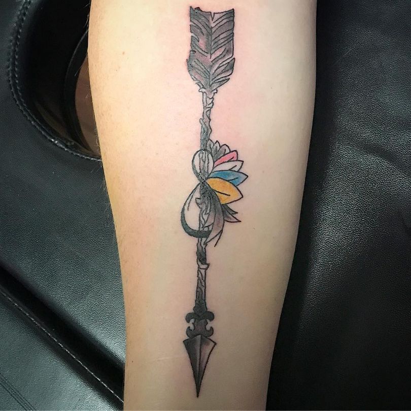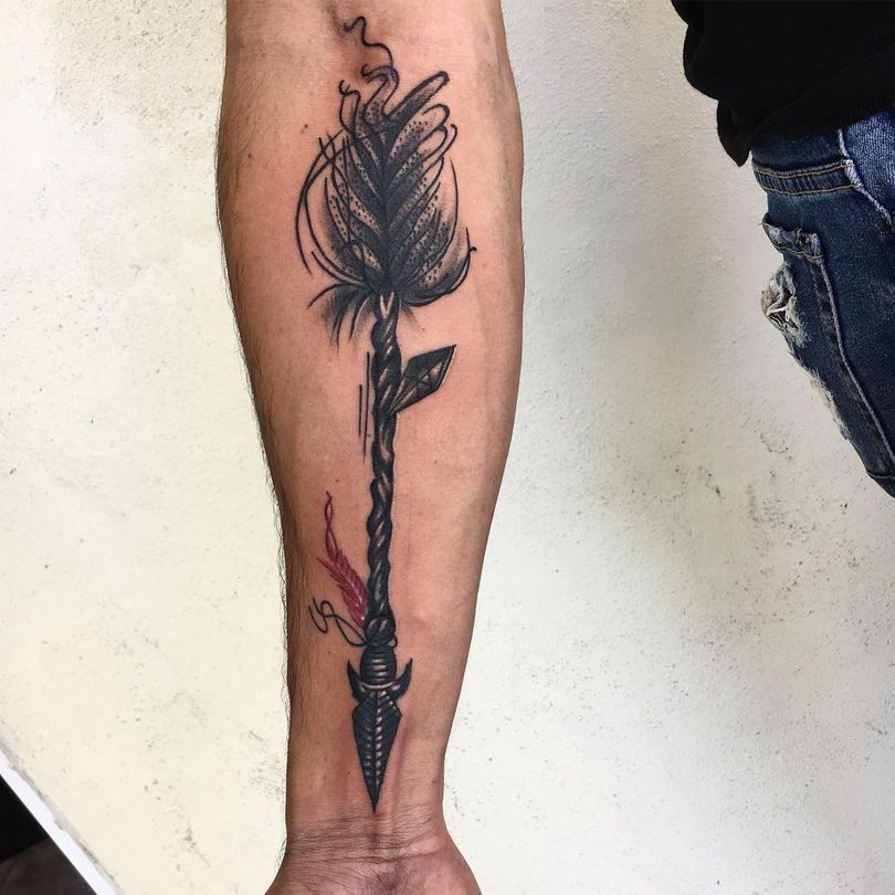 Предметът има свещено и психологическо значение. Това е най-старият символ, който се среща в културата на почти всички народи. Той представлява вековна мъжка дейност - лов, война. Но често е предпочитан и от момичетата, тъй като студиото предлага модерен, женствен вариант. Всеки дешифрира образа по свой начин, но основната му същност е една и съща - да се постигне задачата на живота.