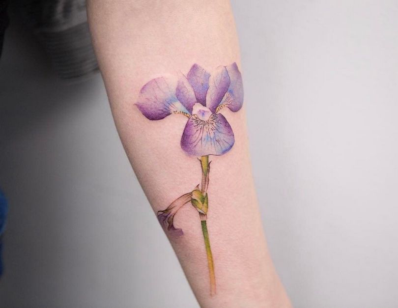 Татуировка Iris, интересна история на цветето, различно символично значение на татуировките и тяхната универсална употреба. Концепция за татуиране, избор на най-доброто място за изображение на тялото, рисунки за подчертаване на индивидуалността.