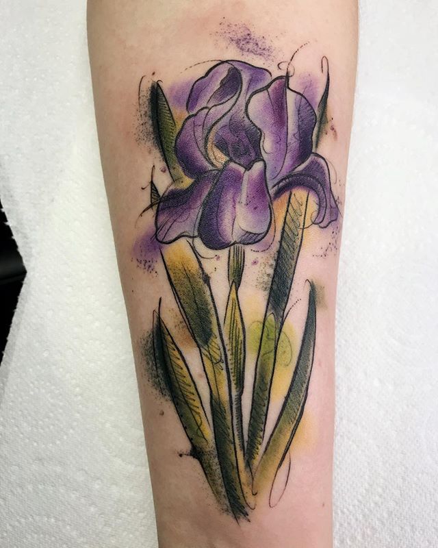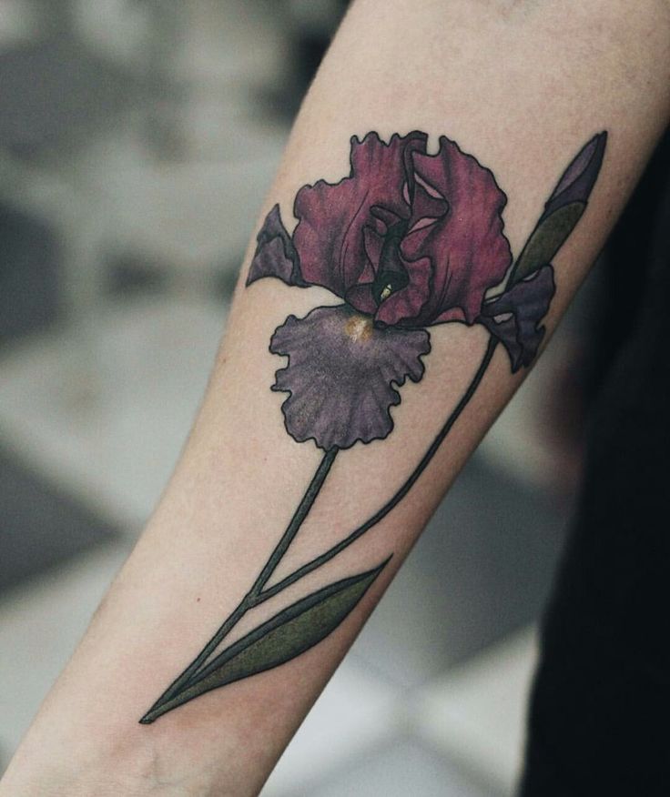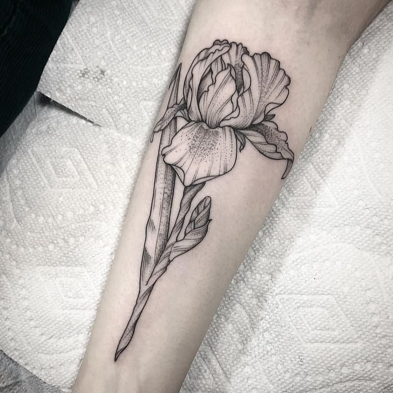 Ирисът е деликатно и красиво цвете с нежни венчелистчета на доста здраво стъбло, което расте в блатисти почви. Не напразно второто му име е блатно цвете, но това не го прави по-малко привлекателно за тези, които харесват необичайни и оригинални татуировки с флорални мотиви.