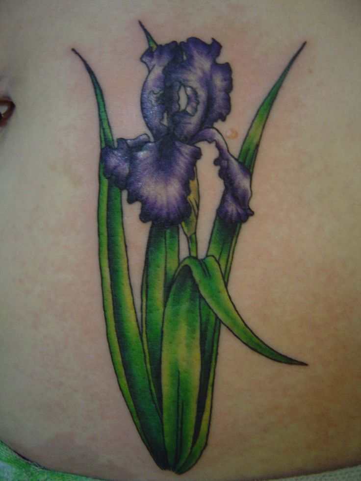 Цветята на ириса изглеждат интересно и много оригинално върху бедрата или гърдите, които могат да бъдат с различни размери и форми.
