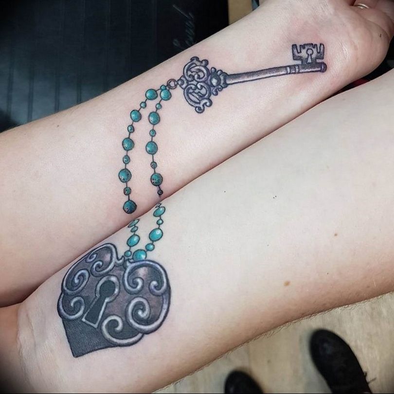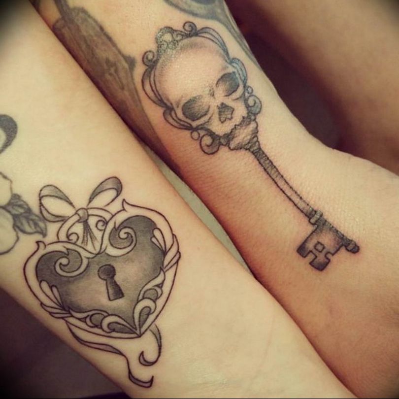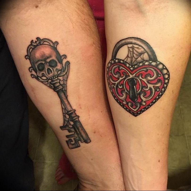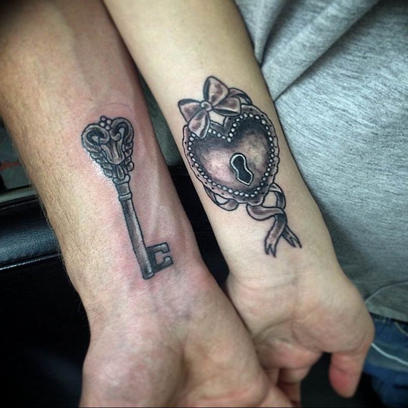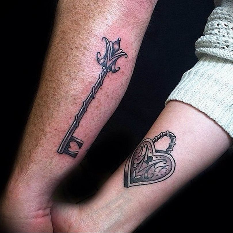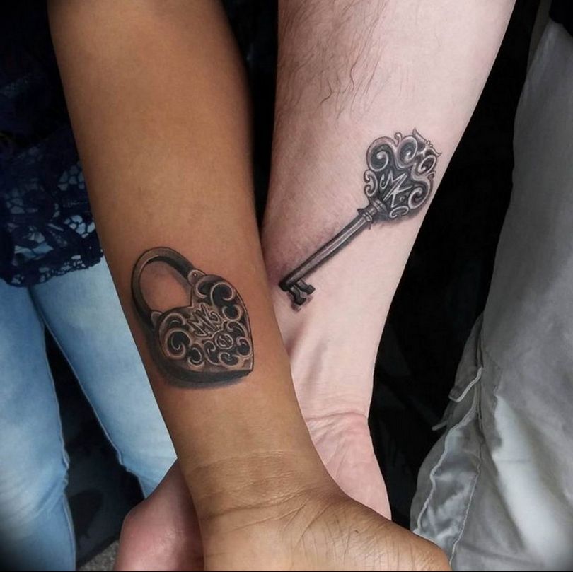 Много влюбени двойки често избират ключалка и ключ като тема за татуировка на двойката. Тези два обекта наистина е трудно да си представим разделени, което много добре резонира с вътрешното състояние на момче и момиче, чиято привързаност един към друг е в най-високата си точка на развитие.