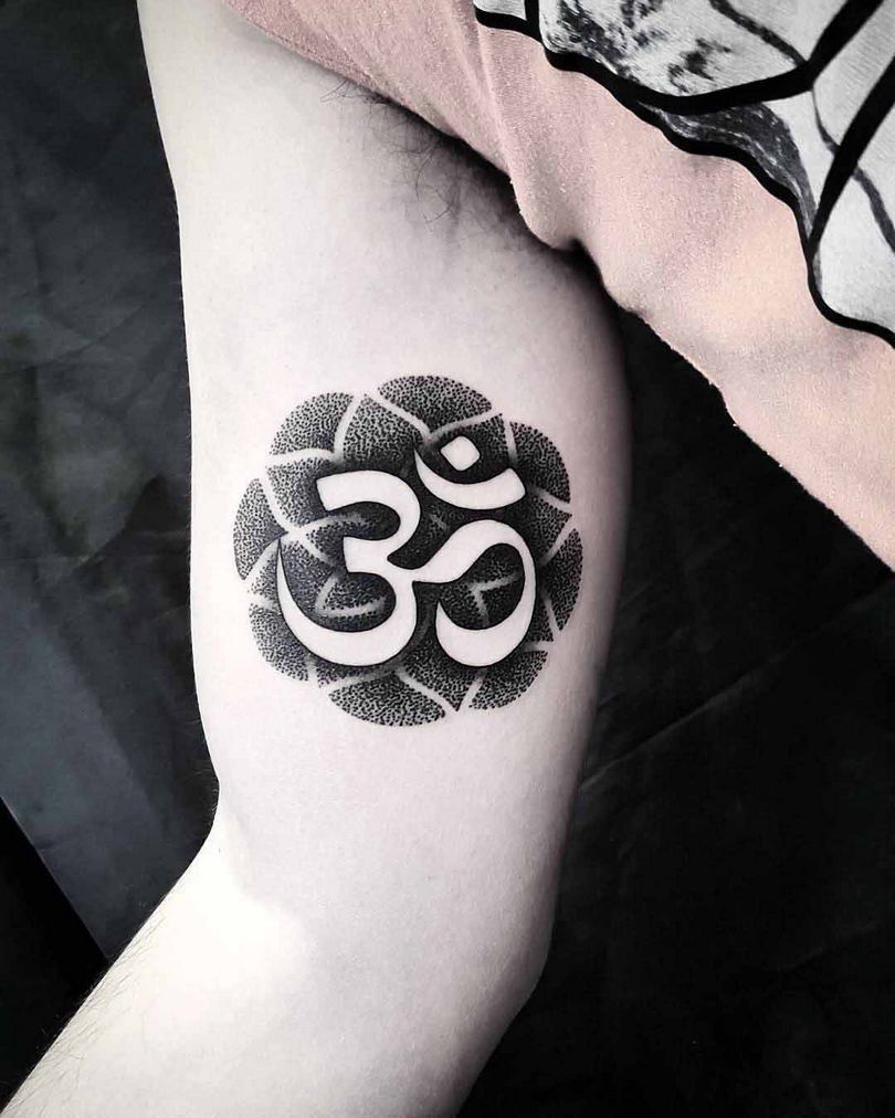 Тъй като символът обединява мъжката и женската, тъмната и светлата енергия, той носи смисъла на неделимостта и целостта на света. Този човек е в процес на духовно търсене и търси своя път към Бога. Татуировката Ом е напомняне да се придържаме към пътя на осъзнаването, да правим правилните избори и да се стремим към просветление дори в най-трудните ситуации.