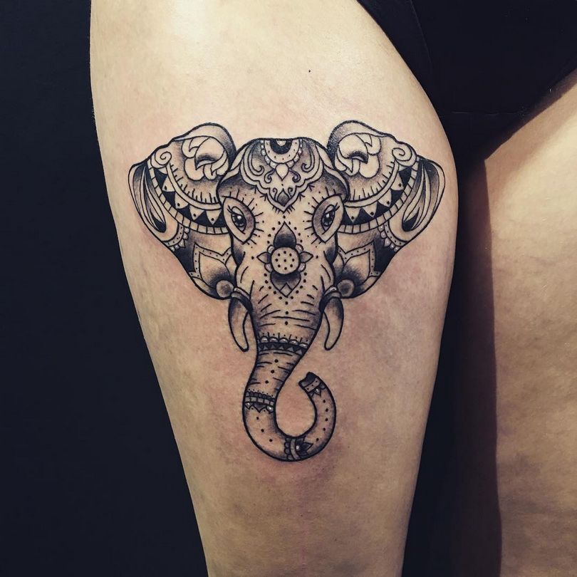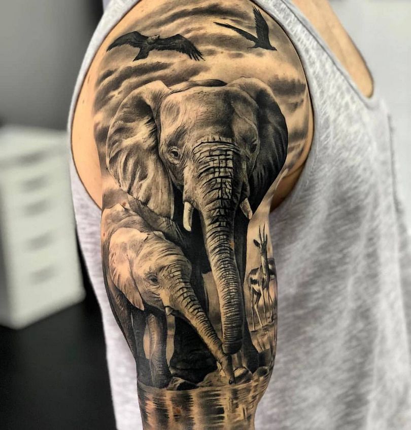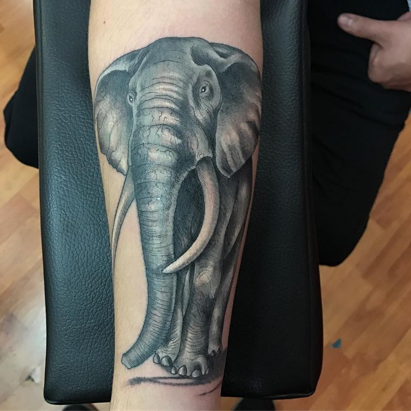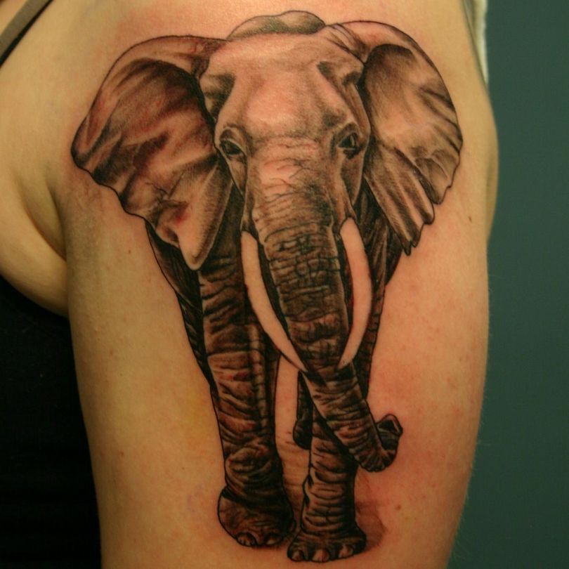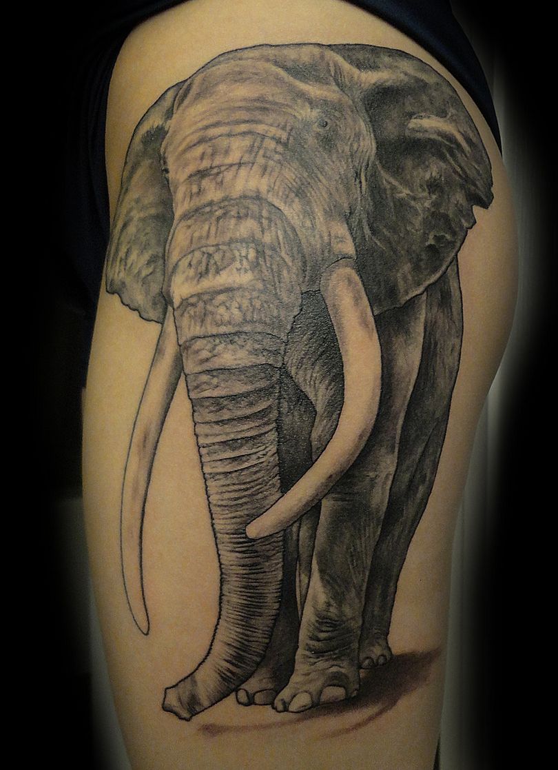 Но слоновете са известни не само с дългата си продължителност на живота; те тежат много и се различават много от другите бозайници. Някои от тях тежат до 12 тона. Поради размера си татуировката на слона е популярна сред мъжете, но и жените често я прилагат към тялото. Това се улеснява от очевидната символика на този образ.