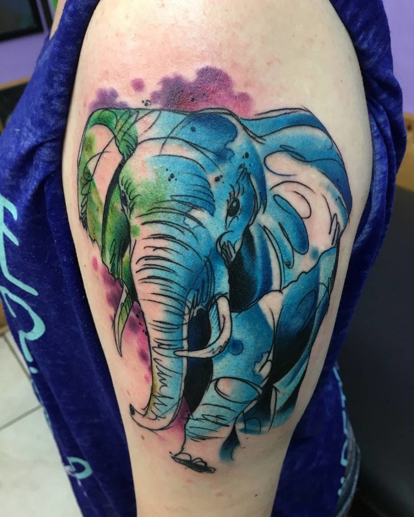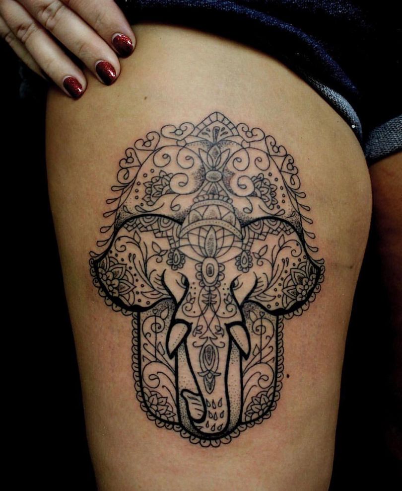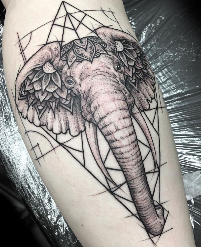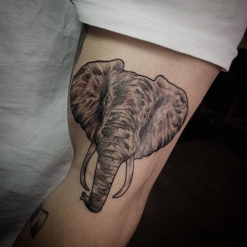 Но слоновете са известни не само с дългата си продължителност на живота; те тежат много и се различават много от другите бозайници. Някои от тях тежат до 12 тона. Поради размера си татуировката на слона е популярна сред мъжете, но и жените често я прилагат към тялото. Това се улеснява от очевидната символика на този образ.
