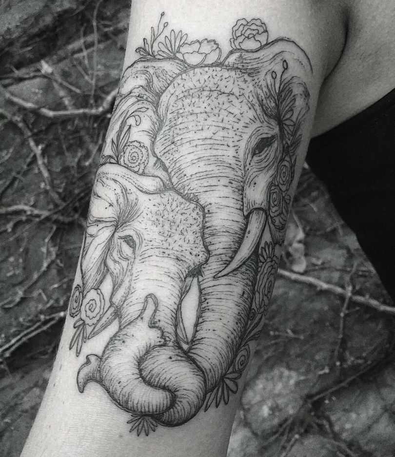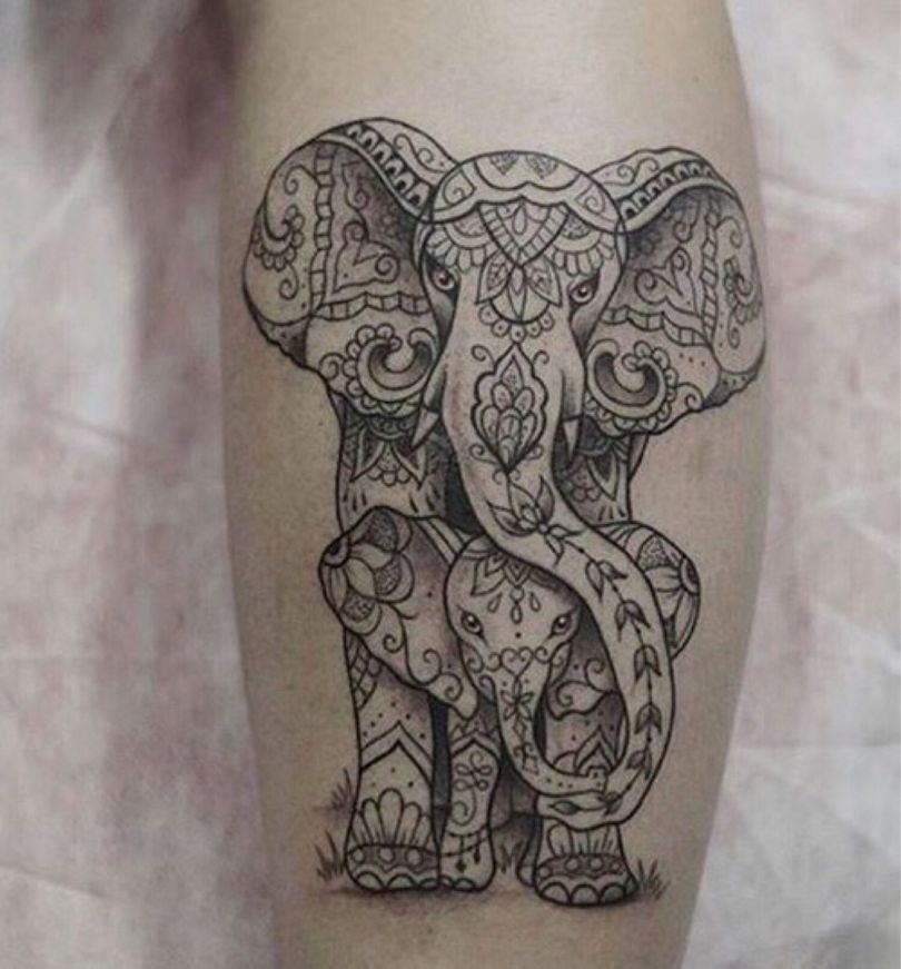Значението на татуировката слон може да бъде свързано с майчините чувства. Гигантите се грижат внимателно за потомството си в продължение на 10 и повече години. Растежът на плода продължава около 2 години. Това е от съществено значение за раждането на пълноценното малко - то трябва бързо да се изправи на крака и да следва стадото, за да се опре на неговата защита.