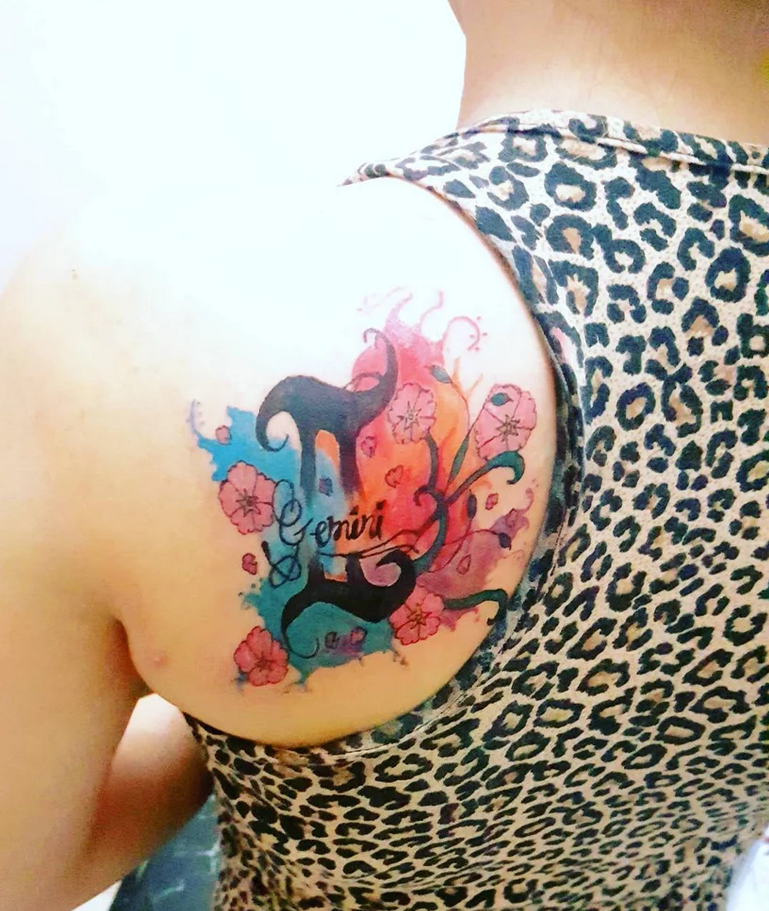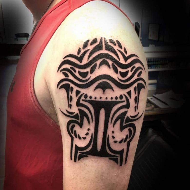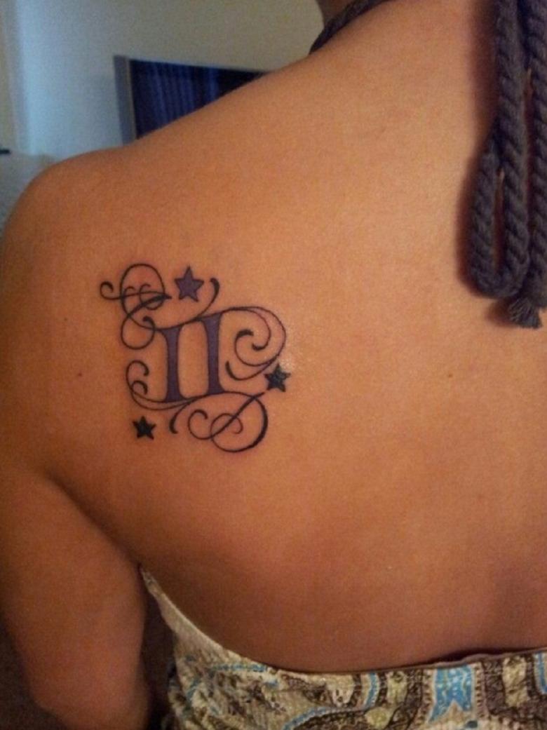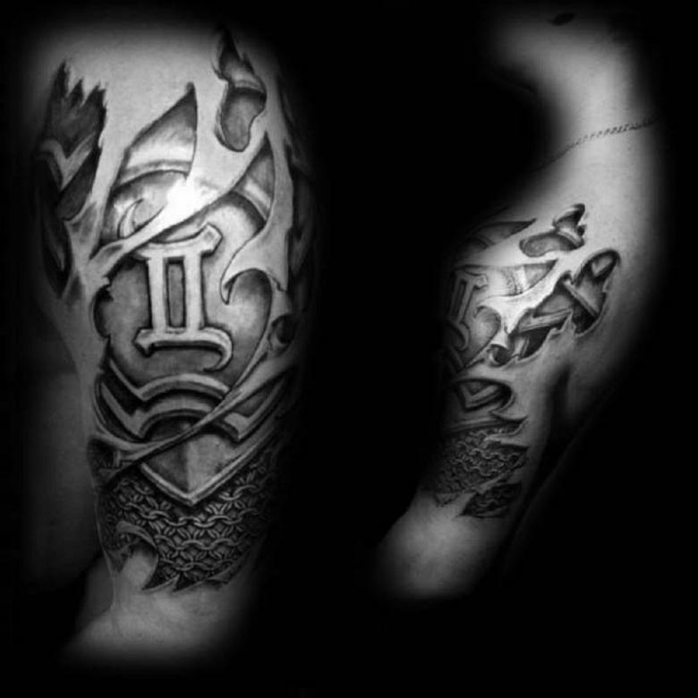 - L'épaule, ici le tatouage Gémeaux est rarement infligé, ce qui est surprenant, car le symbole qui y est imprimé montre le caractère volontaire de la personne, sa volonté d'affronter les difficultés de la vie.