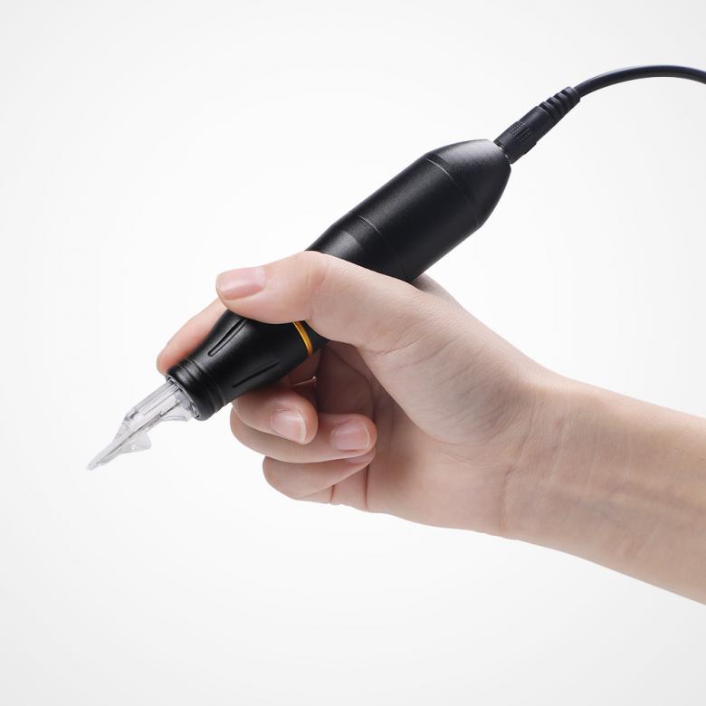 La machine de type contour est utilisée pour créer des lignes fines et claires, mais ne sert pas à tatouer de grandes surfaces de peau. Principe de fonctionnement : le mouvement rapide de l'aiguille crée un contour net, sans laisser de traces ni de taches. La machine à tatouer est utilisée pour le microblading.