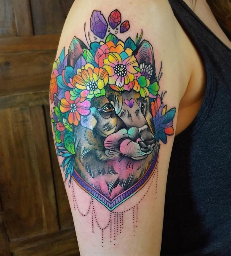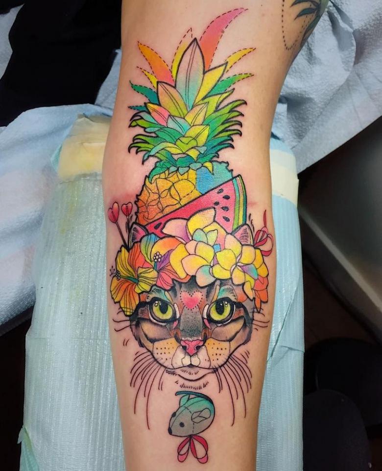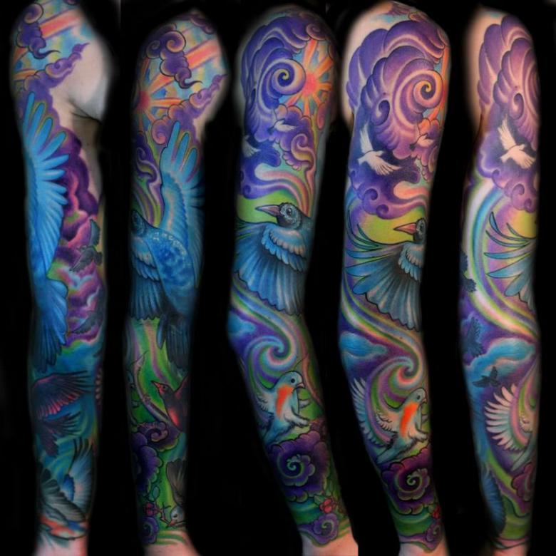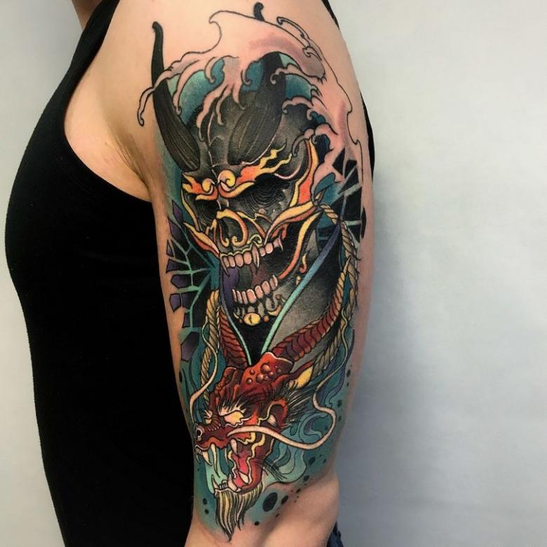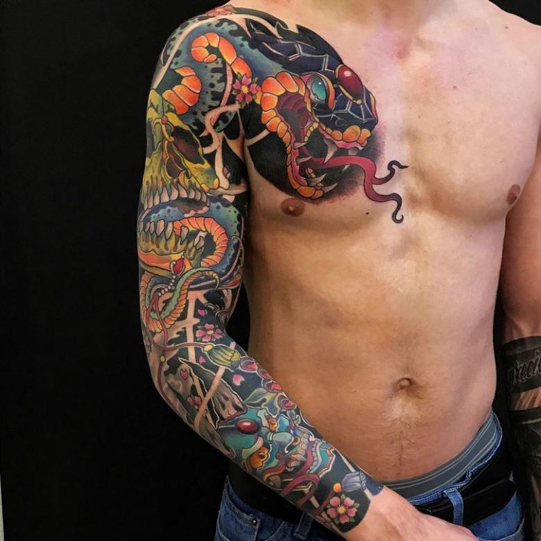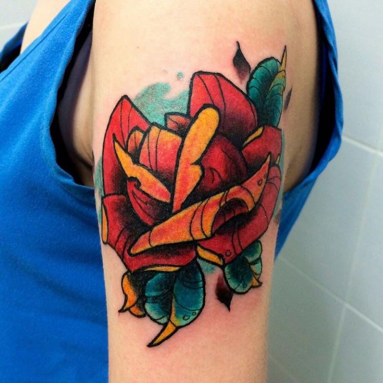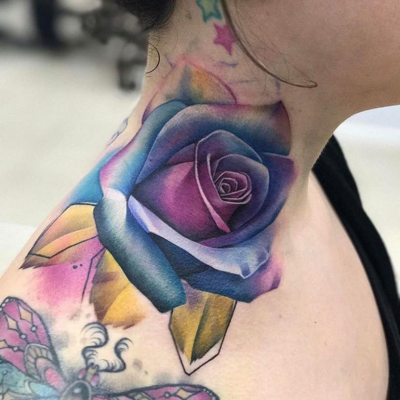De nombreuses techniques et styles ne peuvent se passer de couleurs vives et de nuances. L'essentiel est une bonne combinaison. Lorsque vous choisissez un tatouage, n'oubliez pas que vous êtes le seul à devoir le porter sur votre corps toute votre vie. Que vous devez l'aimer et qu'elle doit vous faire plaisir tous les jours.