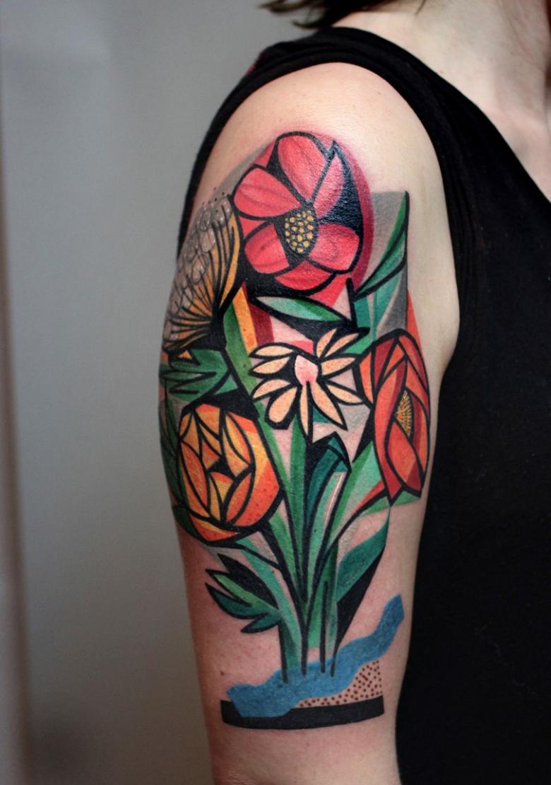 Si vous avez choisi un petit dessin, comme une fleur sur votre bras, vous ne devez absolument pas essayer de faire correspondre toutes les couleurs que vous aimez voir sur le bureau du tatoueur.