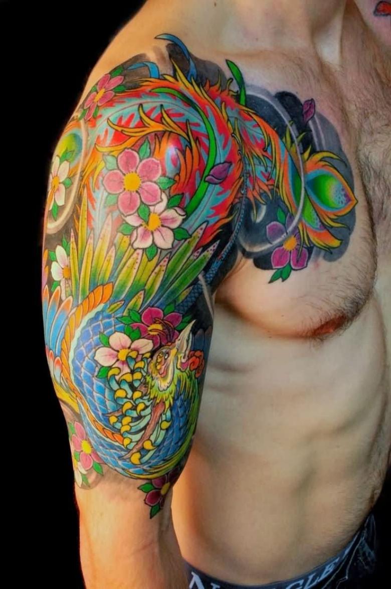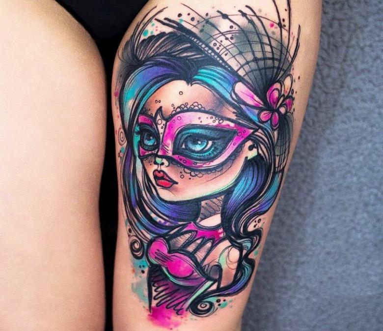 Tatouages colorés - motifs pour hommes et filles, où les placer, photos spectaculaires