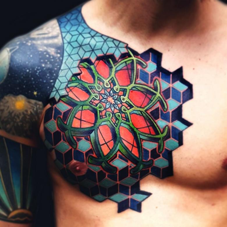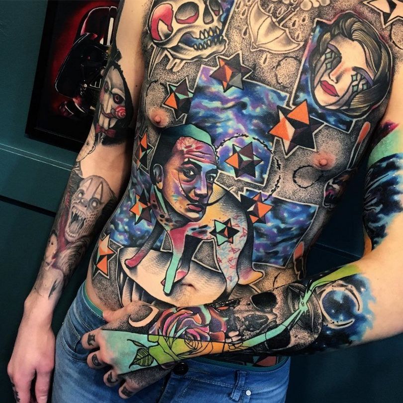 Un style jeune dans lequel une variété de formes géométriques, de lignes fantaisistes, de traits chaotiques et de taches colorées jouent un rôle clé. Chaque tatouage a sa propre philosophie, mais ils n'ont pas de signification précise.