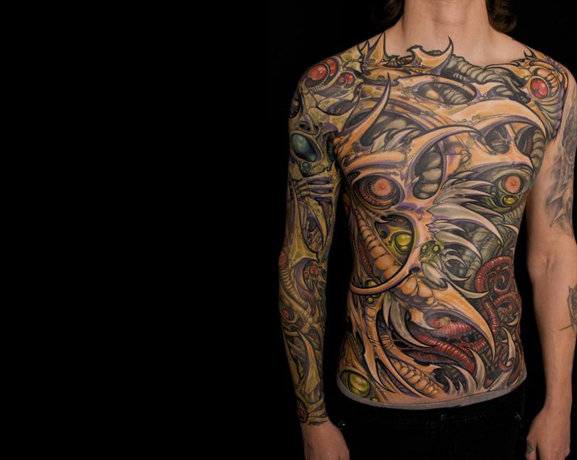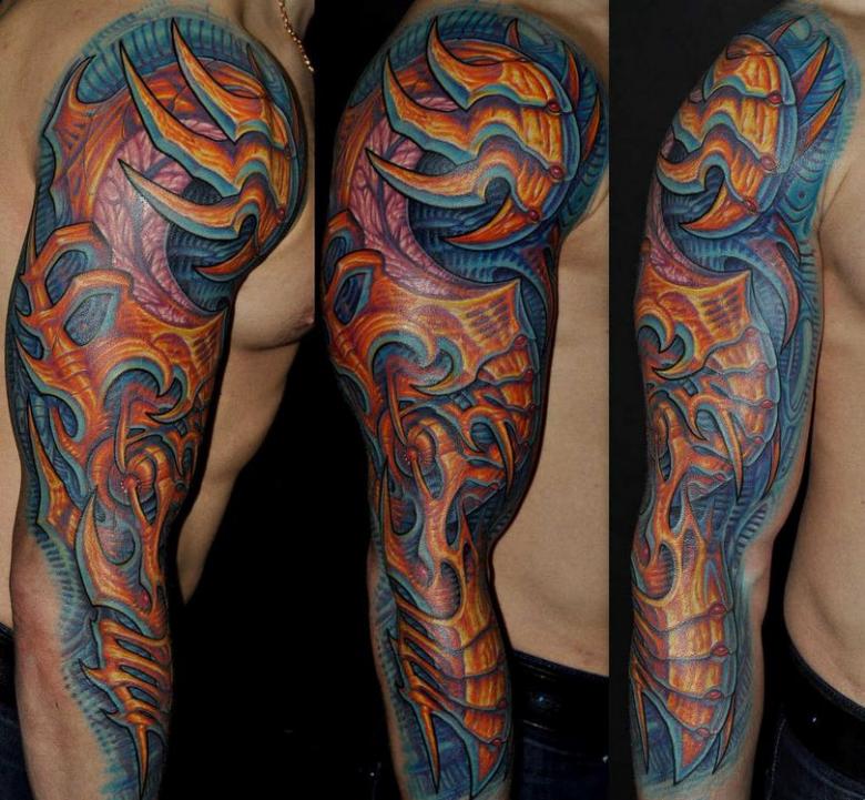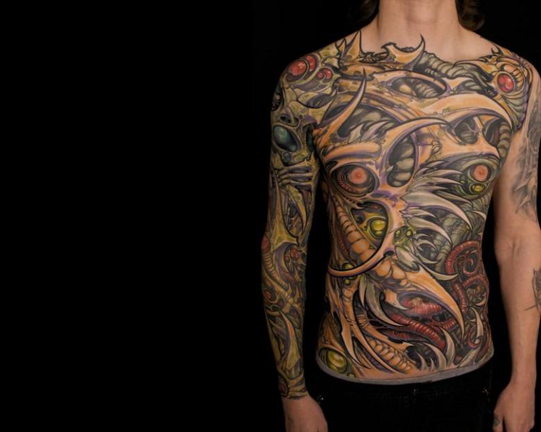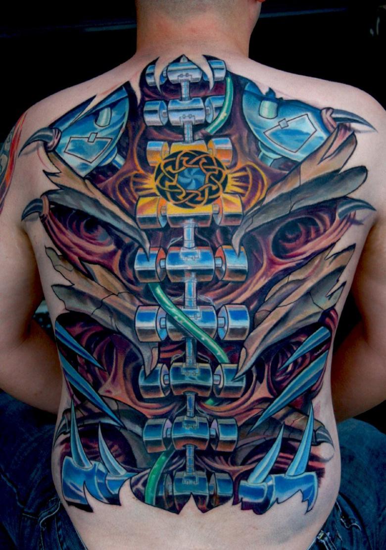 Ce style est très demandé par les hommes. On dirait que des mécanismes sont visibles à travers la peau déchirée. Le noir, les nuances de gris avec l'ajout de quelques couleurs complémentaires sont utilisés pour les représenter. Il est placé sur le bras ou la jambe.