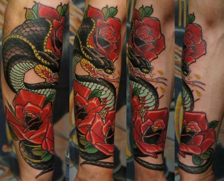 Les tatouages colorés sont plus difficiles à réaliser que les tatouages monochromes et nécessiteront des mises à jour plus fréquentes des couleurs par la suite. Le croquis doit être en parfaite harmonie avec votre couleur de peau et de cheveux, afin de ne pas donner une impression incongrue. Il est nécessaire de choisir avec soin un maître qui aidera à réaliser l'idée et sera capable de combiner correctement les couleurs.