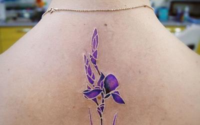 Tattoo iris - description complète, variantes de significations, où placer sur les mains, l'épaule, le dos, photos