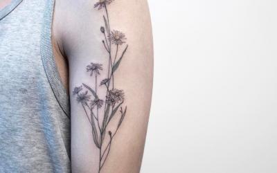 Tatouage bleuet - significations pour les filles et les hommes, lieux d'application (sur la main, le pied, la clavicule, le poignet), vignettes d'inspiration et idées de photos.