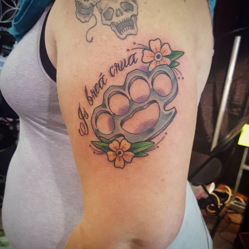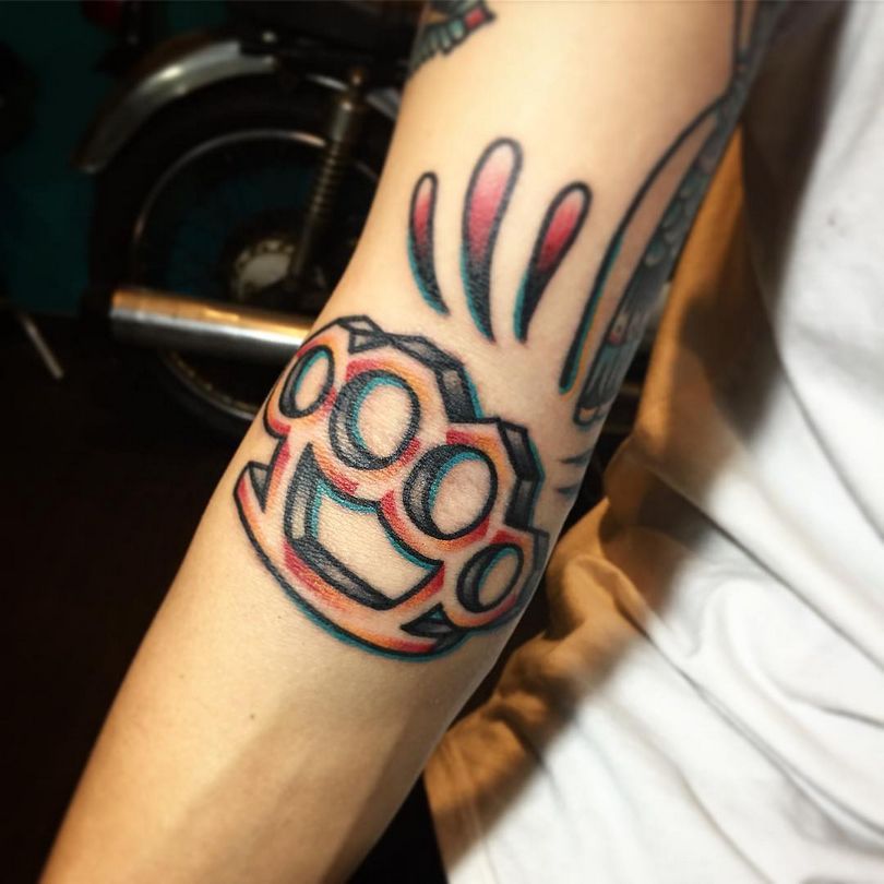 Generelt betyder messingknojern tatoveringen den rolle, som råstyrke spiller, samt dens tilstedeværelse. I kombination med en Rottweiler eller tiger, en kold klinge, revolvere - det er helt sikkert en skjult trussel, som kan tages i betragtning som en advarsel.