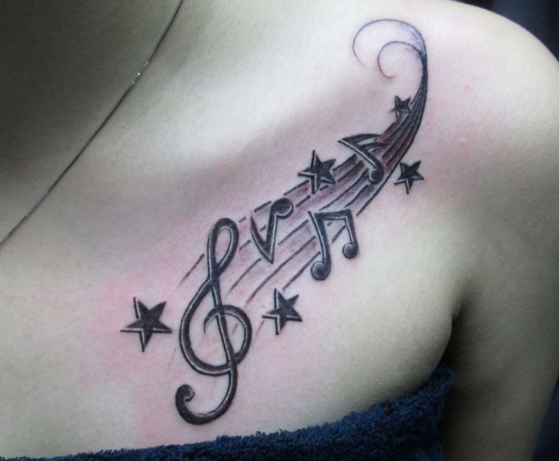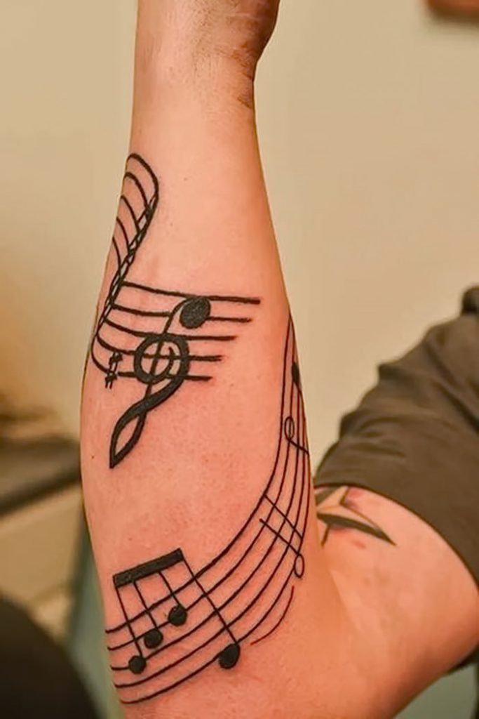 Men hvis den, der bærer tatoveringen, blot er musikelsker, er det i det mindste ulogisk at mistænke ham for sådanne snævert specialiserede forbindelser. Sådanne mennesker foretrækker noter, når de forsøger at fremhæve deres kreative og raffinerede natur, originale tænkning, sensualitet og til tider endda sentimentalitet. På den anden side kan tatoveringen tjene som en påmindelse om en turbulent og oprørsk ungdom, om luksus og tidligere fritidsinteresser.
