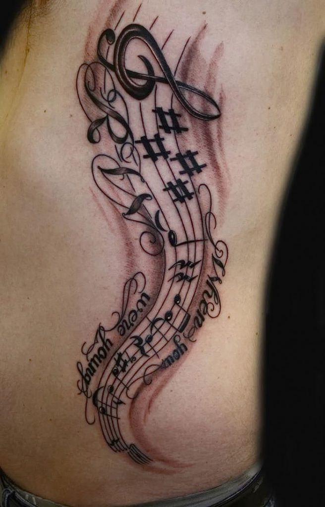 Det er et mønster eller en bestemt form, der består af noter: hjerte, blomst, kile af fugle osv. og ses oftest på piger. En stor del af betydningen af en sådan tatovering ligger i den overordnede sammensætning, og brugen af en sådan karakteristisk ramme kan forklares ved originalitet og kreativitet, kærlighed til musik og opfattelsen af den som en vigtig guide i ens liv.