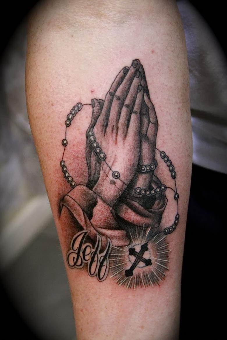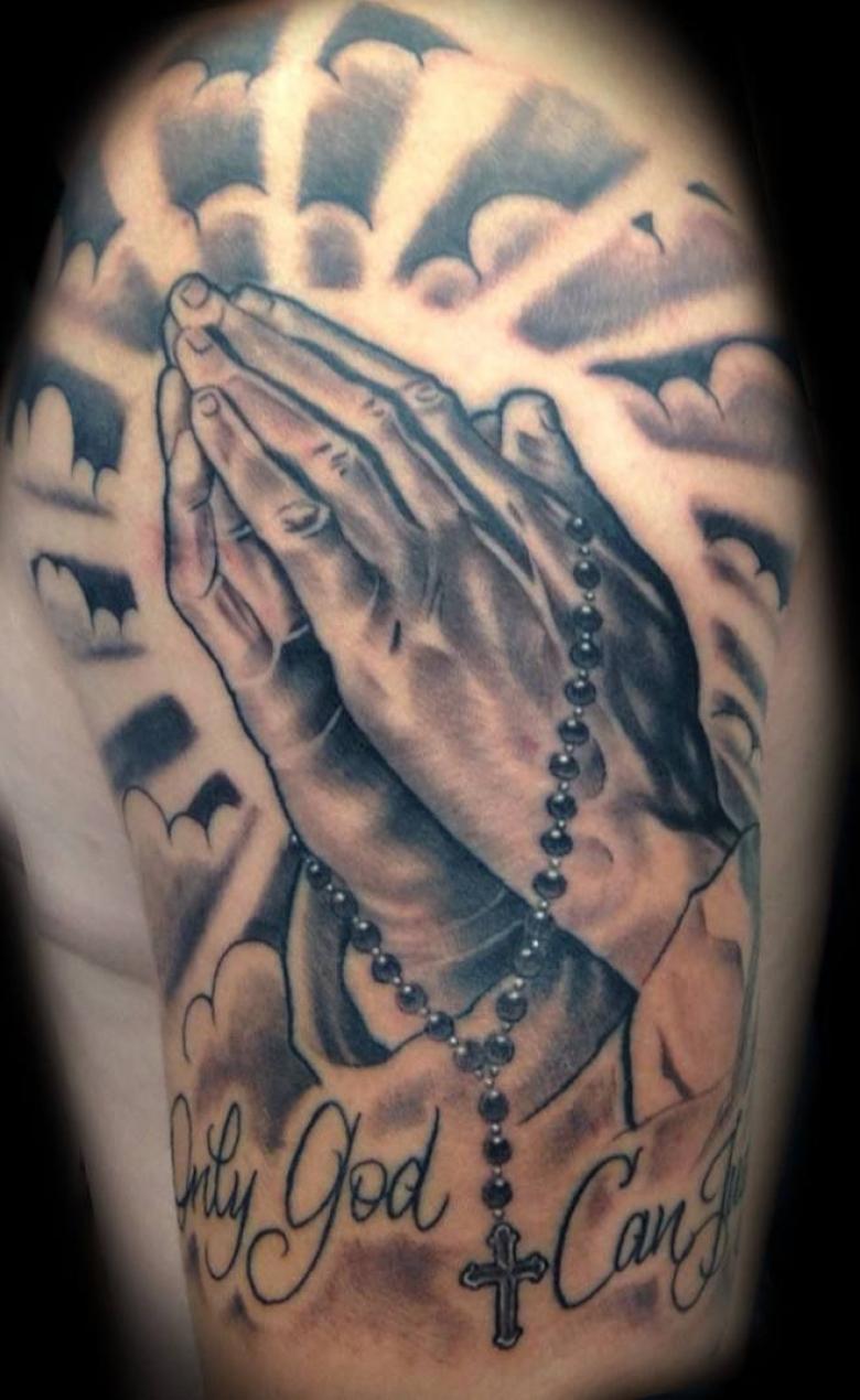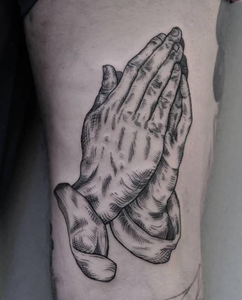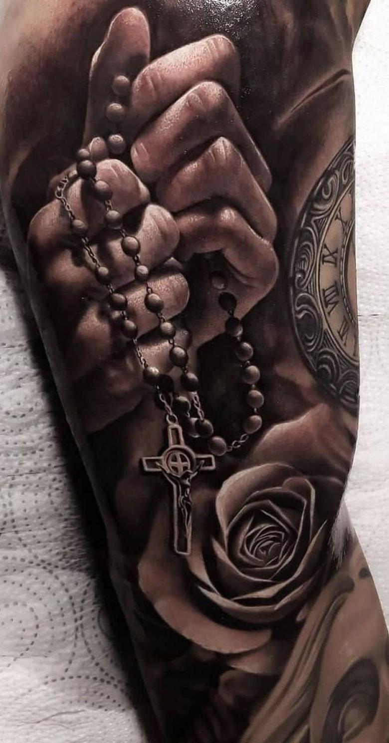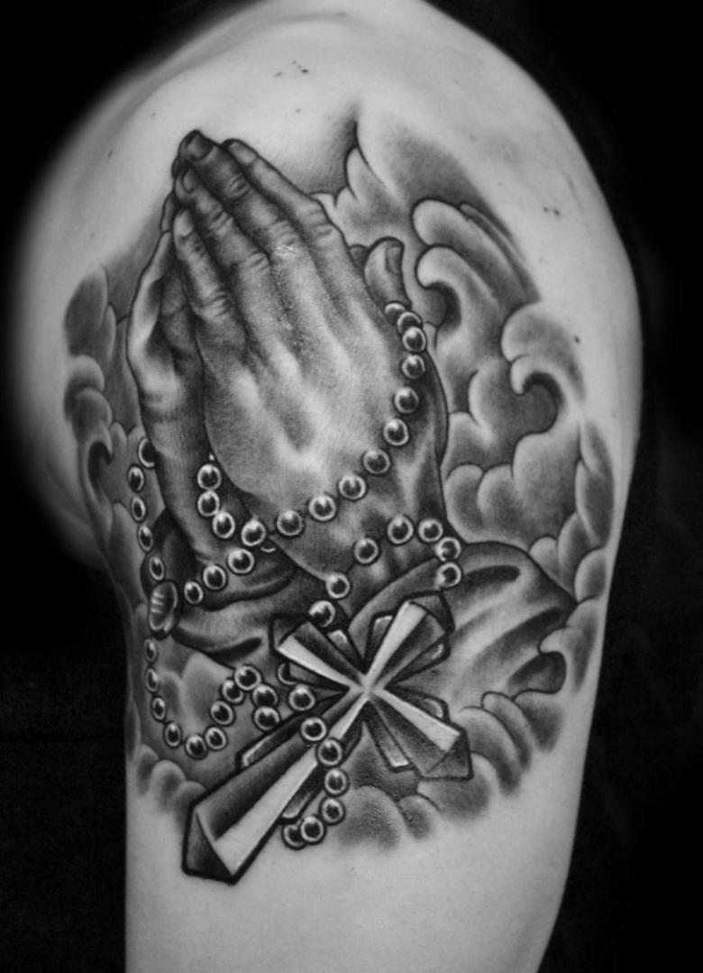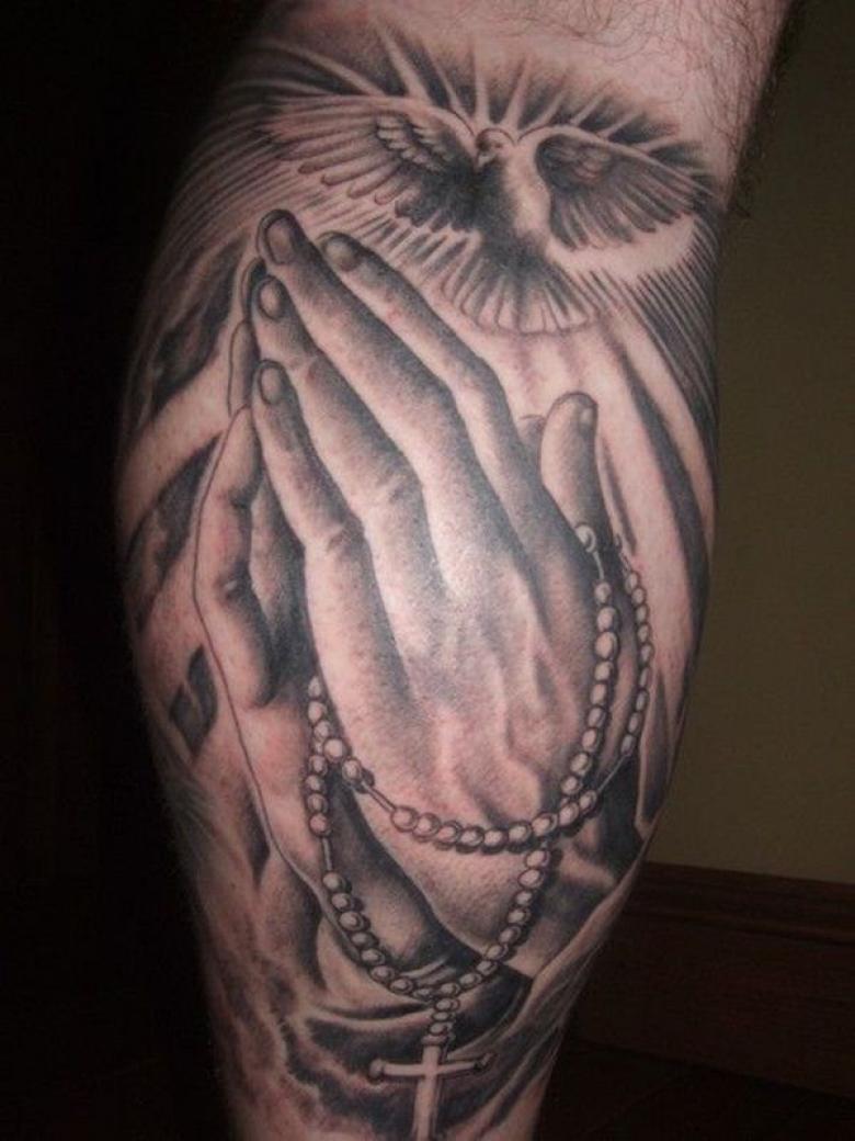 Den bedende persons armtatovering er ofte lavet i to farver, hvoraf den ene nødvendigvis er sort. Der er afvigelser fra den klassiske version - med en rosenkrans, et kors, ja, endda en bog i hånden. Denne tatovering nyder en vis popularitet, især hos de ekstraordinære.
