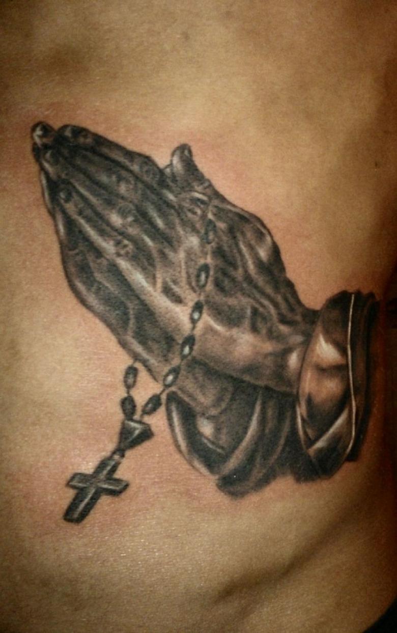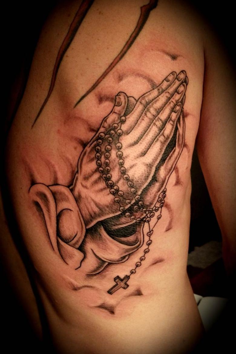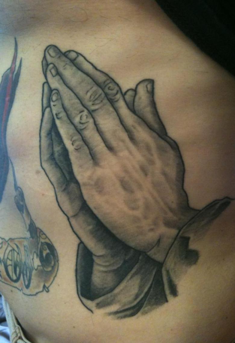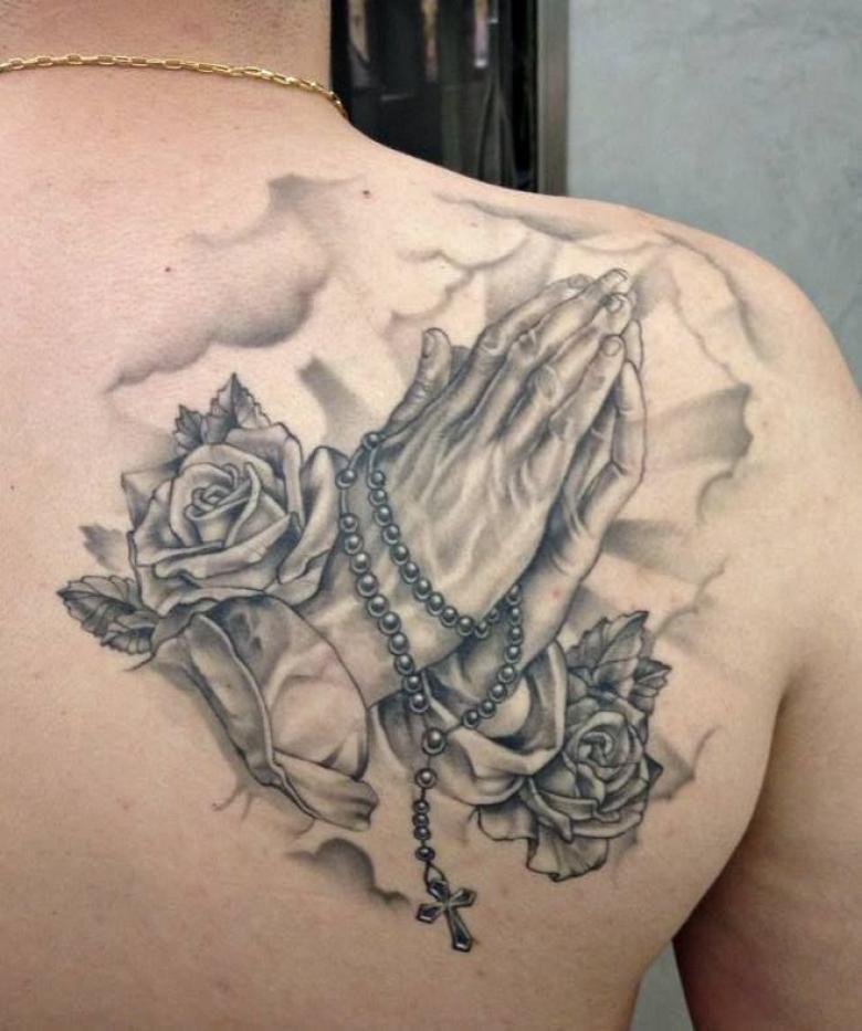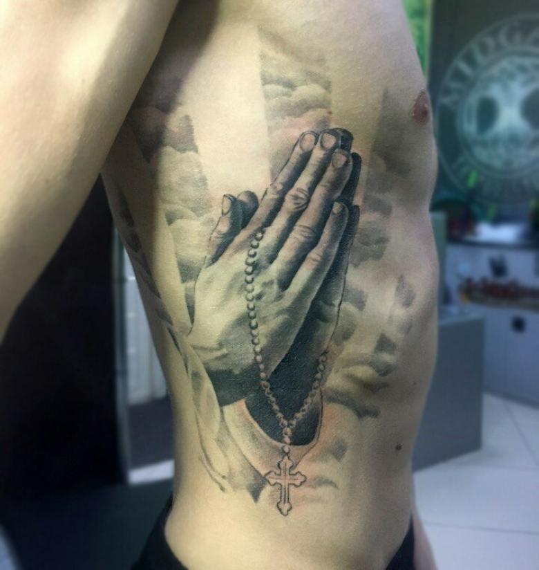 Den bedende mands håndtatovering skal minde om, at der findes en åndelig verden sammen med den materielle verden. En person bør ikke kun være fordybet i jagten på jordiske goder, han bør altid huske Gud og de højere magter. Bønnen skaber en forbindelse med disse kræfter, fylder med styrke og inspiration og udfylder sjælens tomhed.