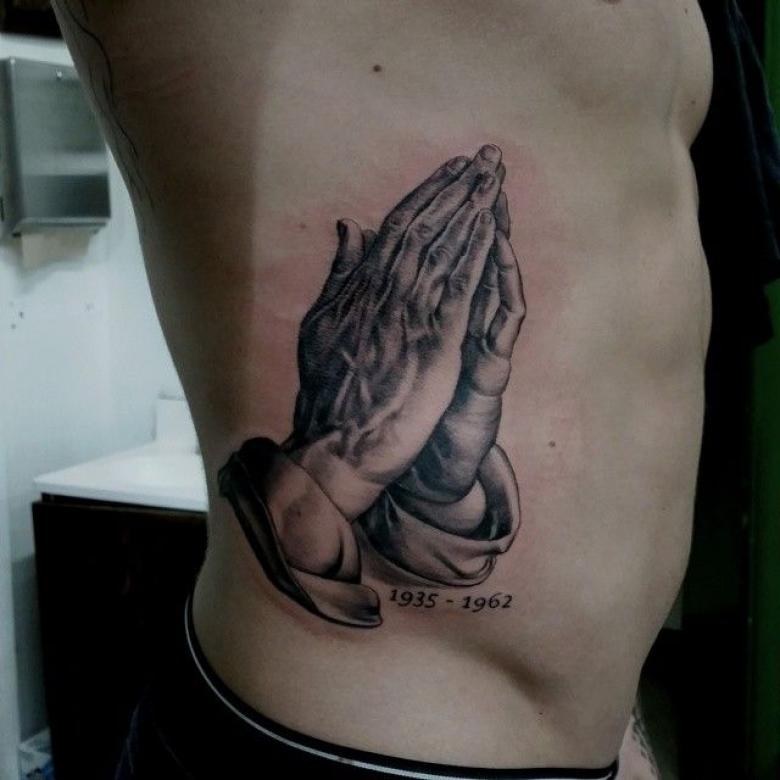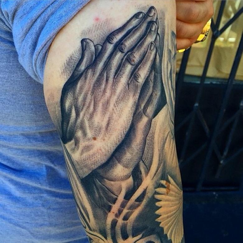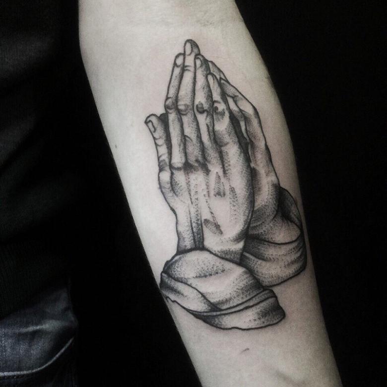 Billedet i en berømt variant kom fra det 15. århundredes maler Albrecht Dürer under penslen i sit maleri. Det var et symbol på religiøs kærlighed og underkastelse, hengivenhed over for den guddommelige vilje til graven. Mange giver dette billede betydningen af kærlighed, håb og forsoning. I vestlig tradition er der stadig en tendens til at lave en sådan bønnerig håndtatovering efter ægteskabet som et symbol på hengivenhed.