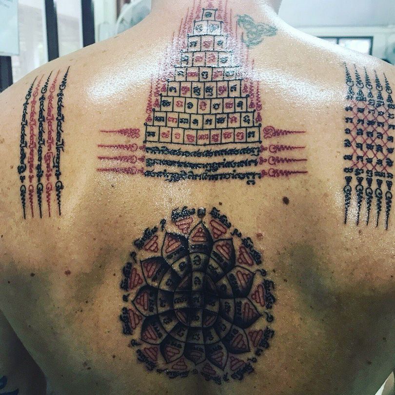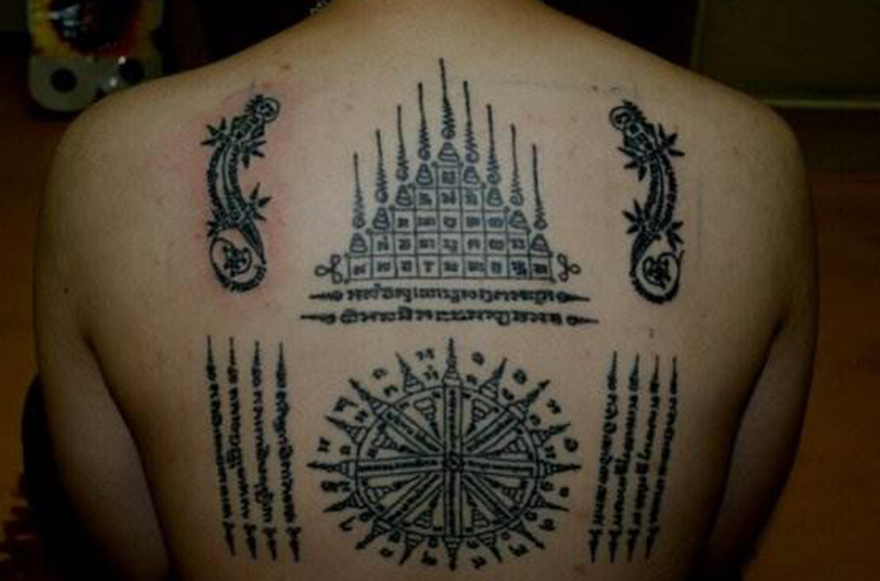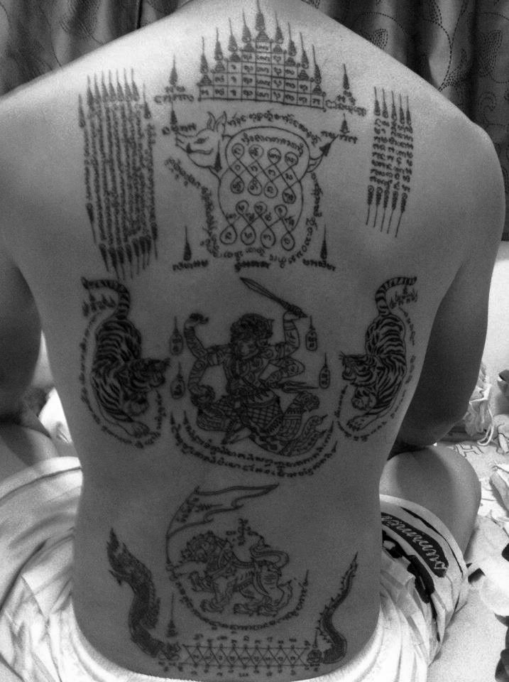 Disse hellige tatoveringer er traditionel kropskunst, som er særegent for de sydøstasiatiske lande. De tjener også som bønner, som man tror bliver besvaret af de højeste guder.