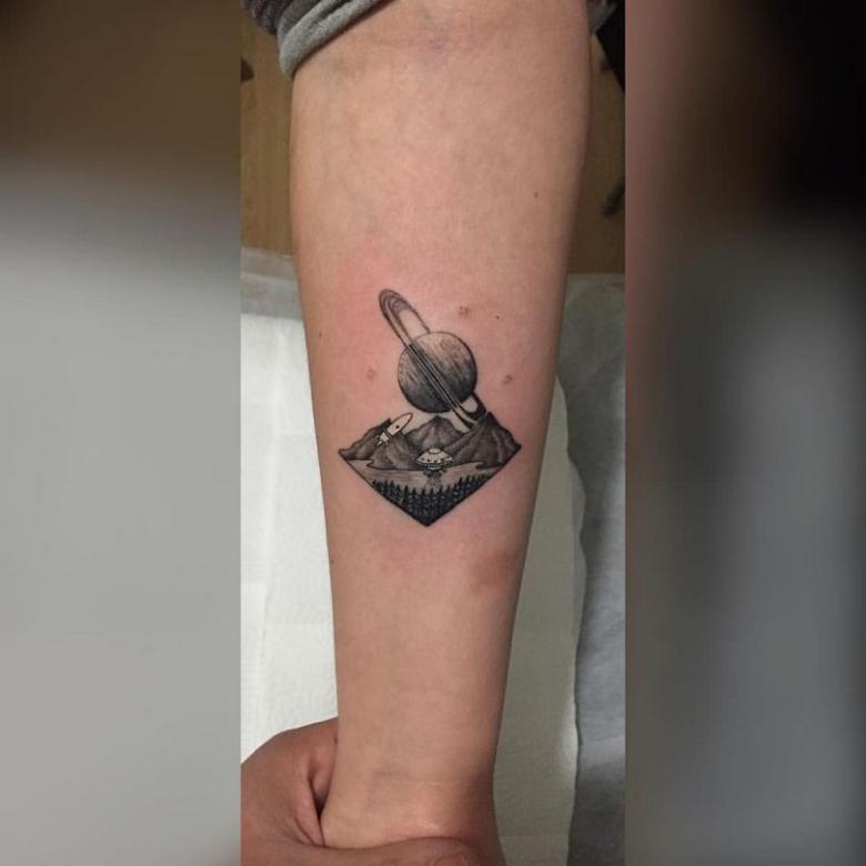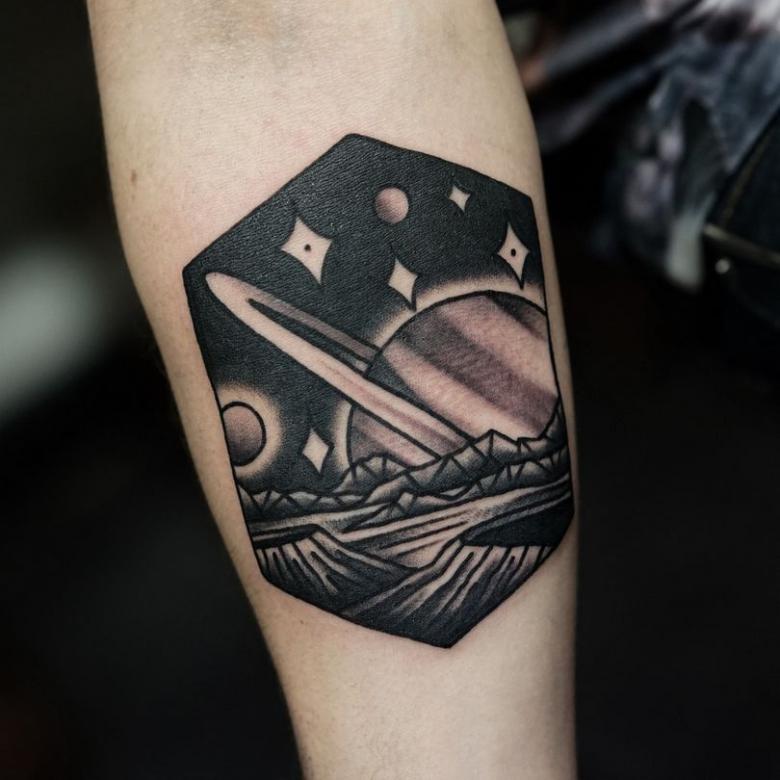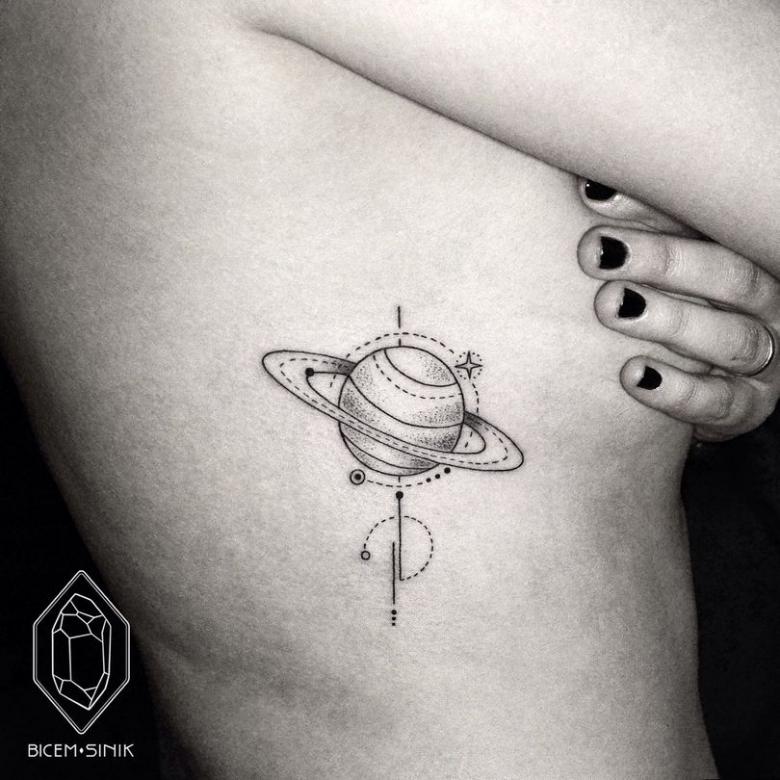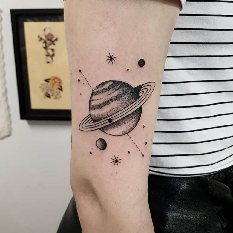 Rummet lokker med sit mysterium, romantikken ved intergalaktiske rejser og de hemmeligheder, der holdes skjult for de bedste videnskabsmænd på jorden. En sådan tatovering kan også passe til en person, der er tilbøjelig til at have et mystisk livssyn. Saturn er blevet ekstremt populær på grund af sit udseende, idet ringene gør planeten grafisk tiltalende.