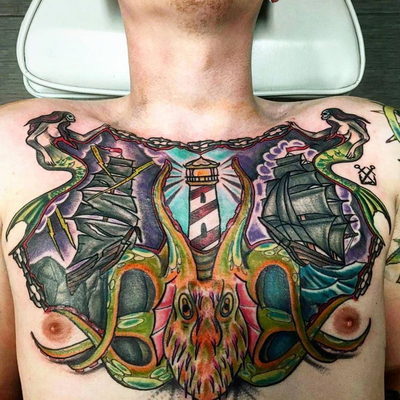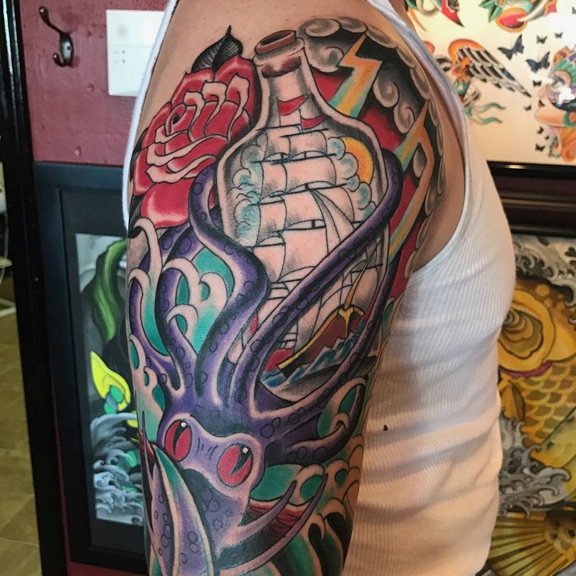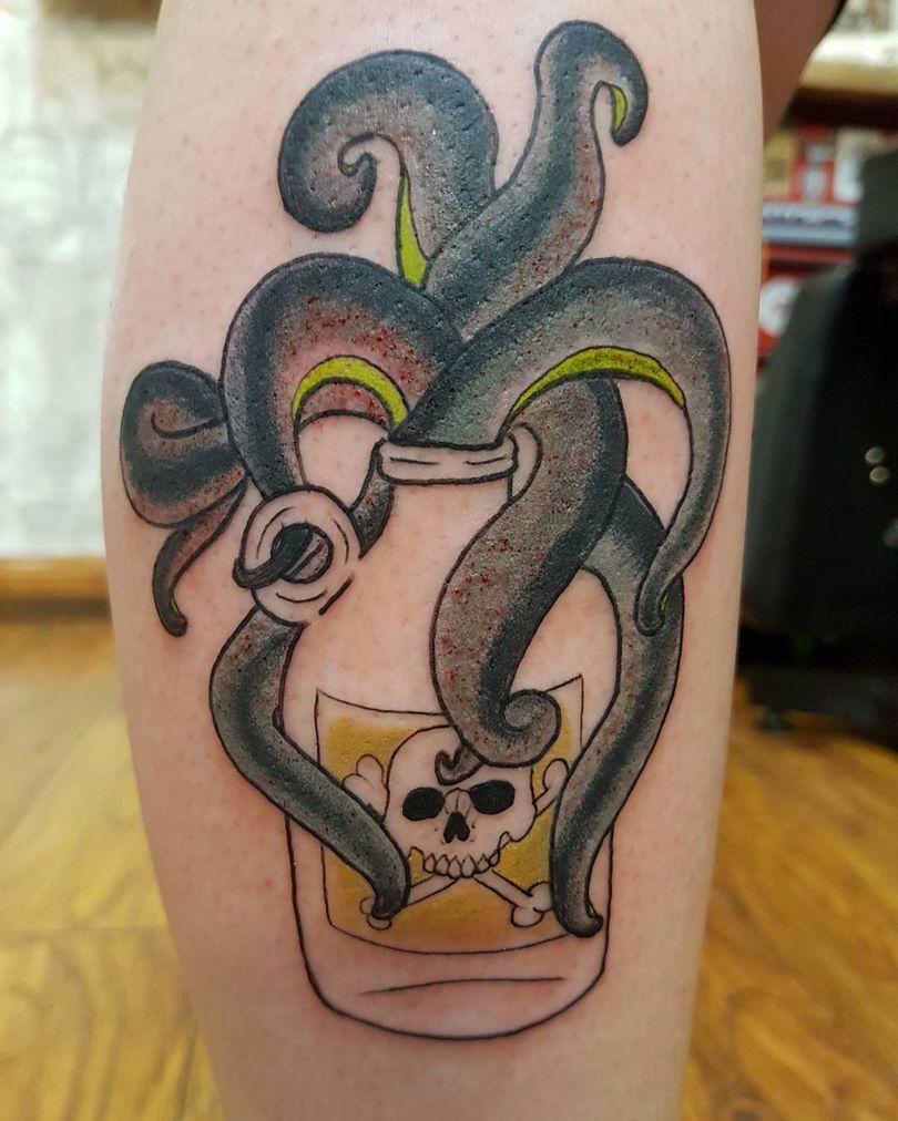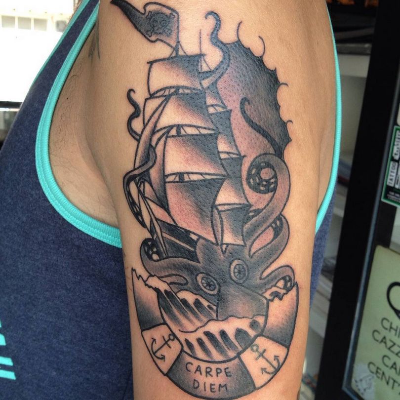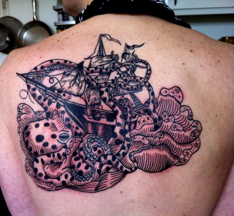 - Glücklich. Ursprünglich wurde das Kraken-Tattoo mit Angehörigen maritimer Berufe - Matrosen, Fischern - und einfach mit Liebhabern des Meeres in Verbindung gebracht. Sie betrachteten ihn als eine Art Talisman gegen Unglück auf hoher See oder einer langen Reise.