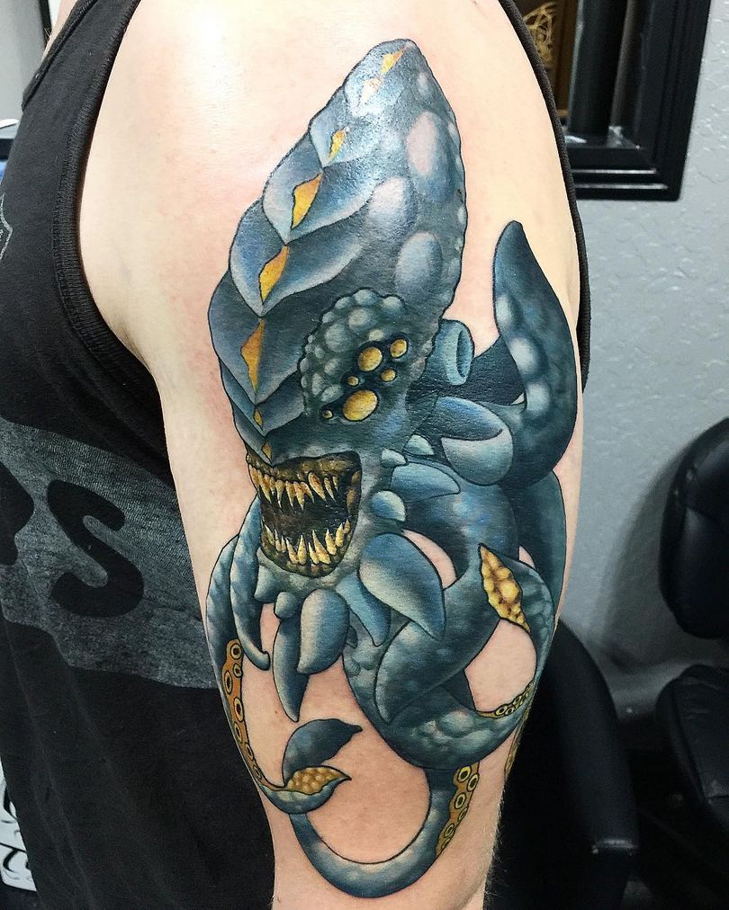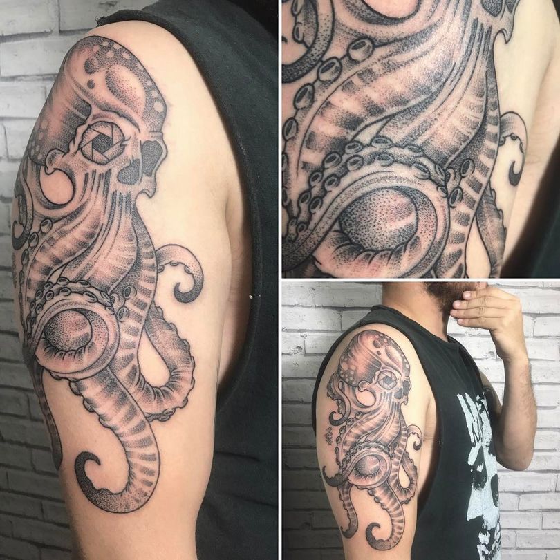 - Macht und Furchtlosigkeit. Dank der hohen Regenerationsfähigkeit des Kraken gilt er als nahezu unverwundbar. Er greift Gefäße an, indem er sie mit seinen Tentakeln umschlingt und sie mit seinen mächtigen Stahlmuskeln zerquetscht. Der Träger des Kraken steht für Stärke und Vertrauen in seine Bewegungen und Entscheidungen. Eine solche Person geht furchtlos zur Sache, schüchtert Feinde ein und motiviert Verbündete. Aber dank seiner Weisheit wird ein tätowierter Krake nur selten als Erster angreifen, und das auch noch ohne guten Grund.