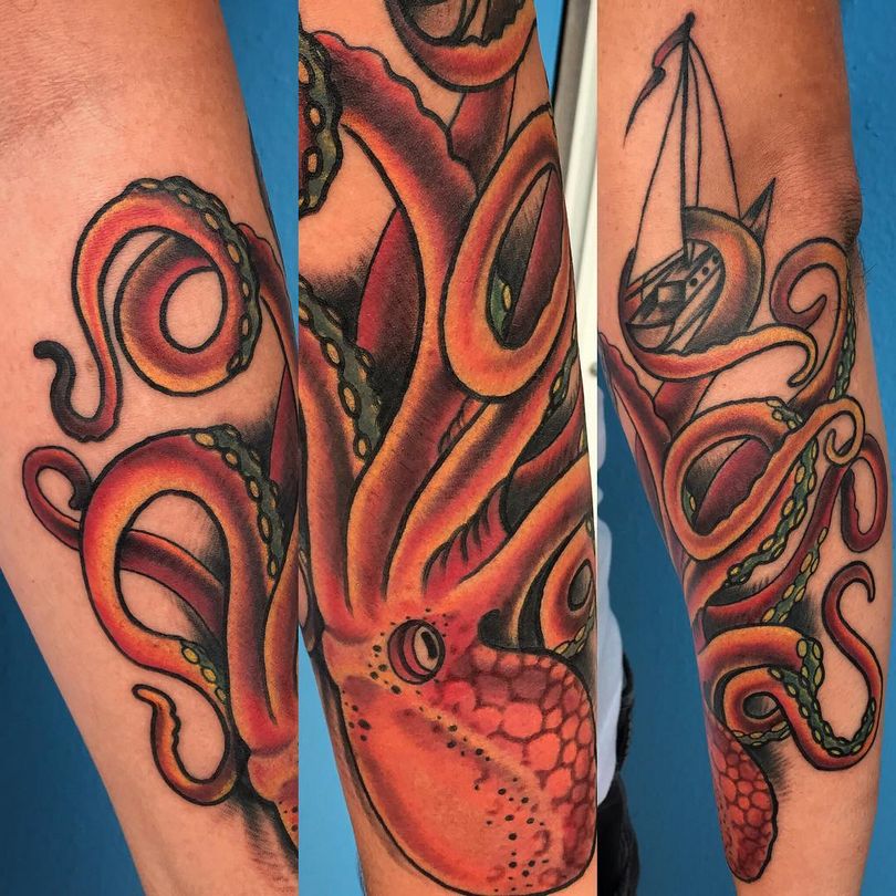 Der Krake ist eine mystische Figur mit einer gewissen magischen Kraft, weshalb viele Menschen, die an Zeichen glauben, den Kraken als Schutzamulett verwenden und ihn als Speicher für Lebenskraft betrachten. Es ist auch ein Tattoo, das von Liebhabern des Meeres oder von Menschen, deren Leben direkt mit dem Meer verbunden ist, bevorzugt wird.