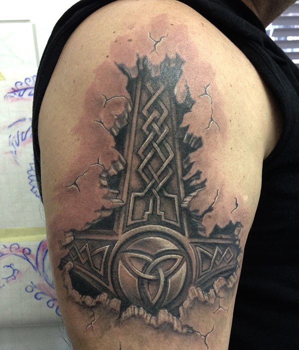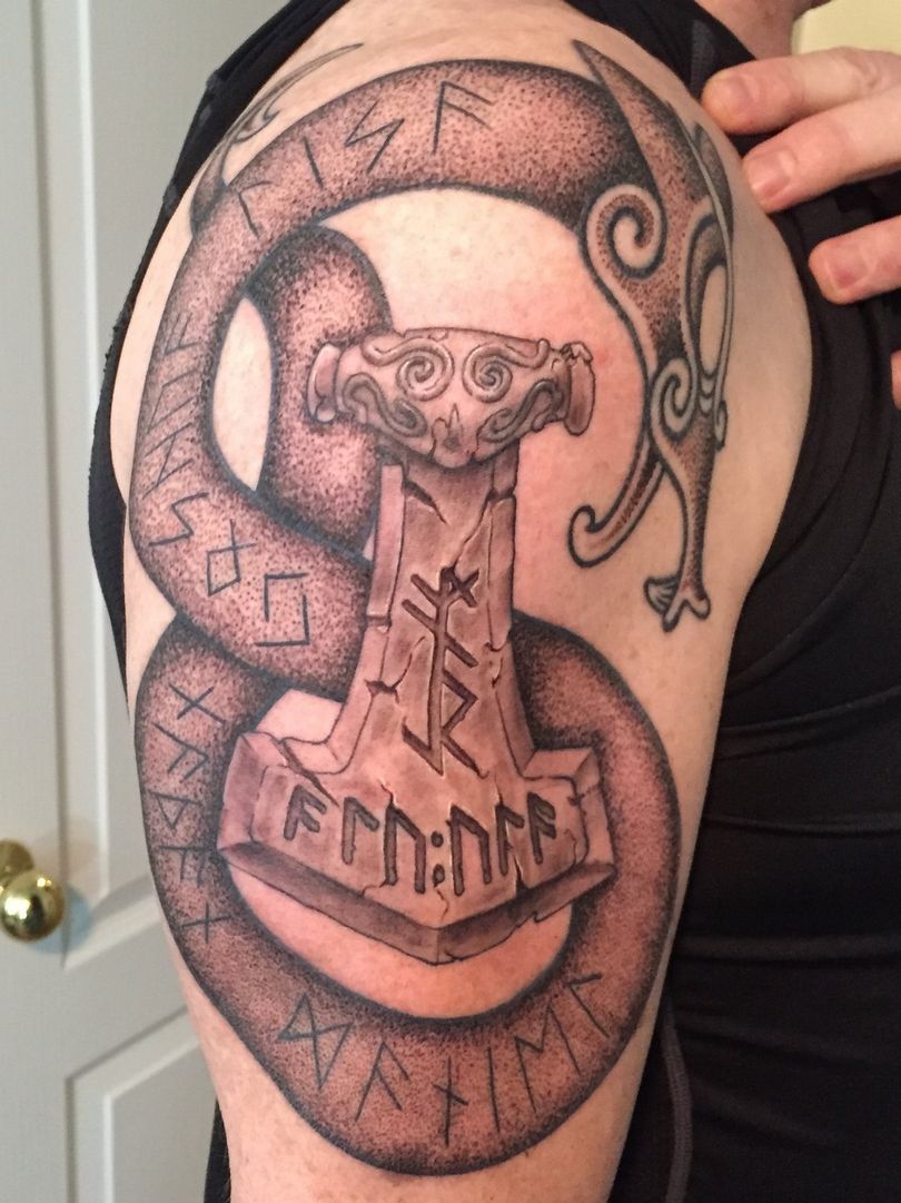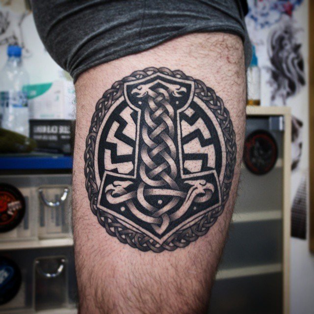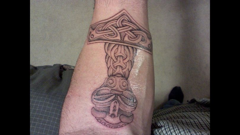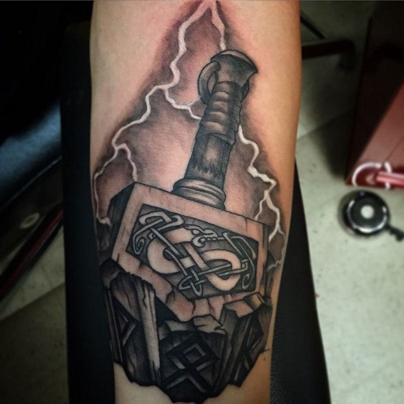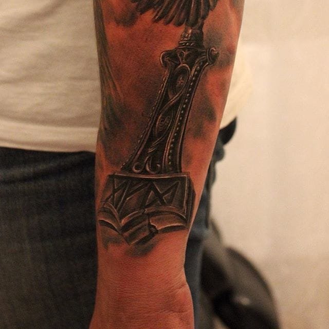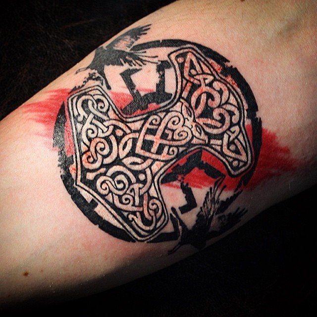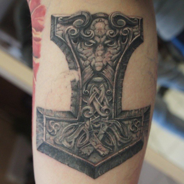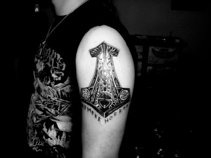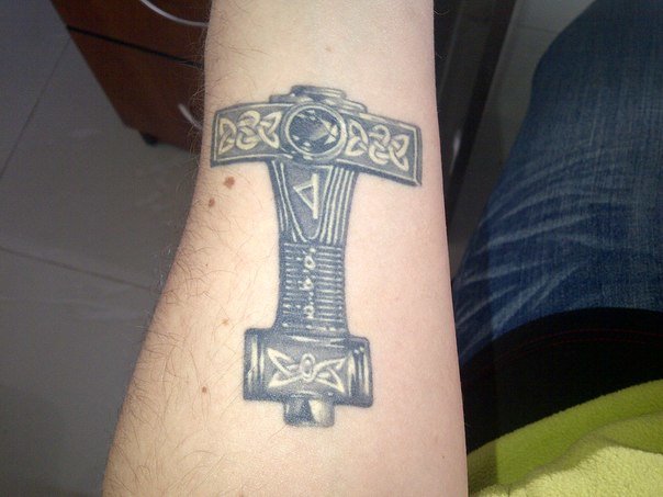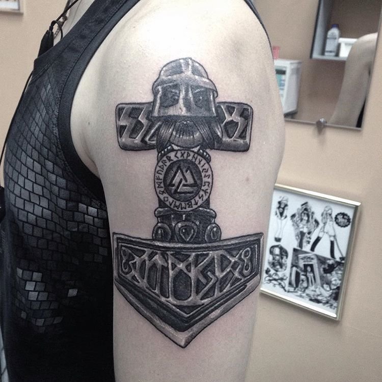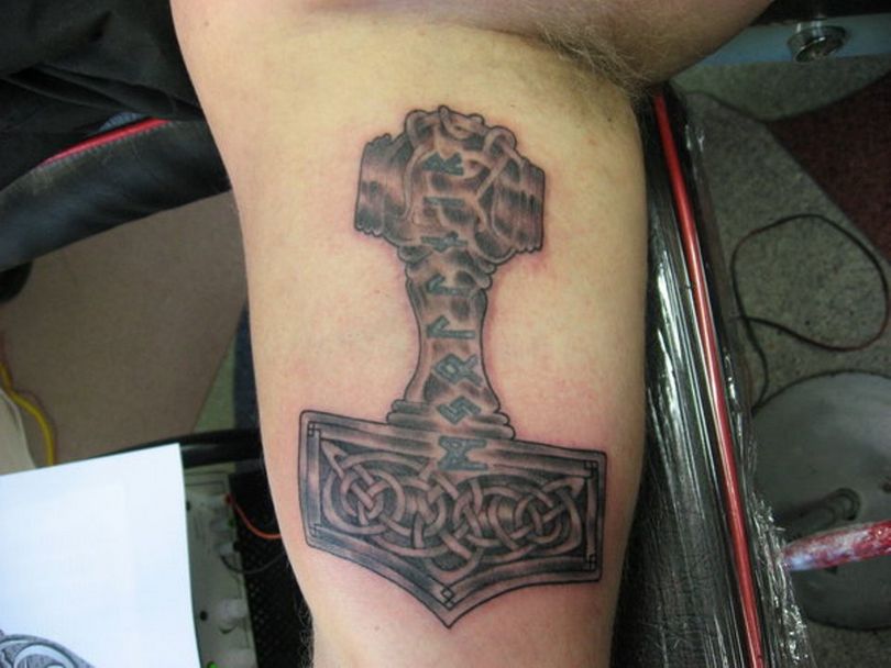 Tattoo Thors Hammer - eine vollständige Beschreibung, wo zu punkten (auf dem Arm, Unterarm), Bedeutung für Männer, Skizzen, spektakuläre Fotos