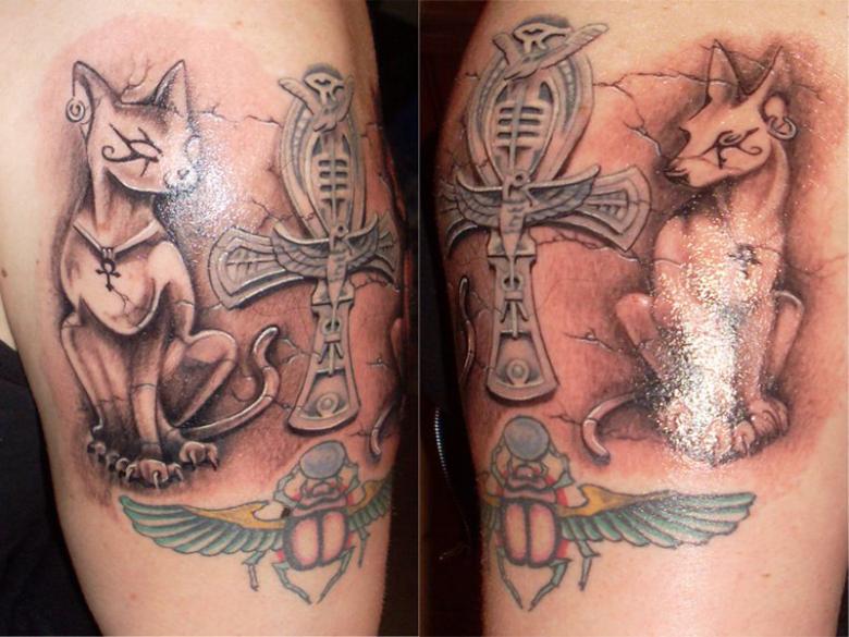 Comme tout tatouage, le tatouage sur le thème égyptien doit procurer un plaisir esthétique. Les significations sacrées des anciens symboles égyptiens sont recouvertes de la poussière des âges. Même la présence de leurs descendants dans la région est discutable. Bien que l'on puisse supposer, comme variante, une confrontation avec les religions classiques du monde.