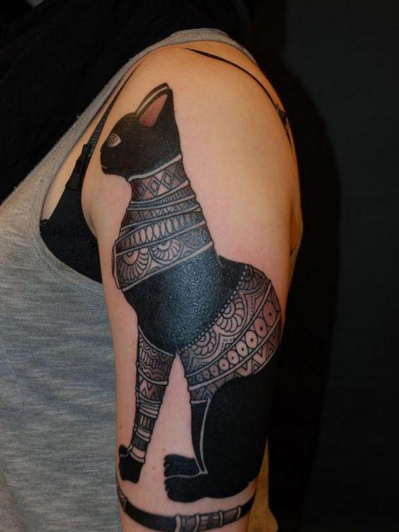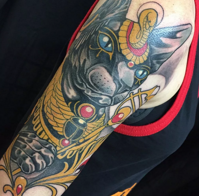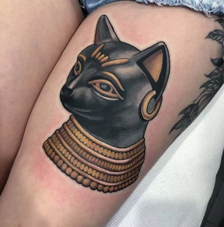 - La déesse Bastet ressemble à un chat. Le tatouage de chat égyptien est censé représenter la féminité, la beauté, l'amour.