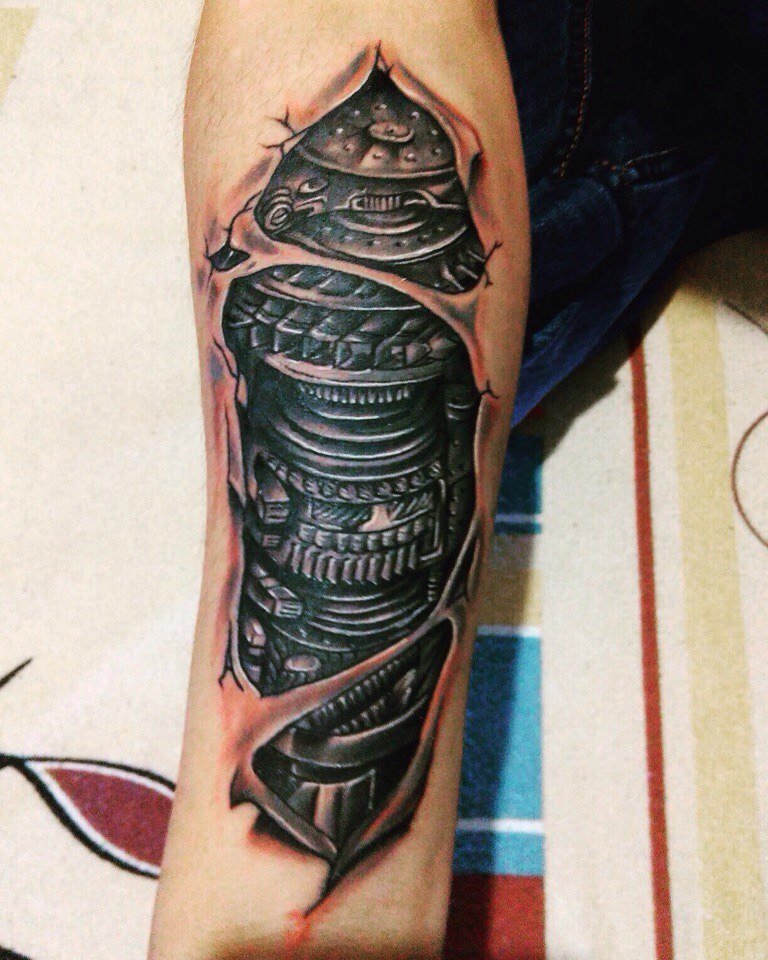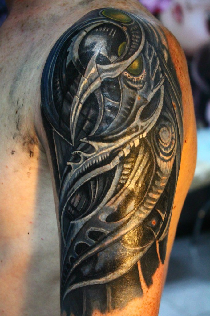 Η εμβιομηχανική είναι ένα δημοφιλές στυλ τατουάζ. Η εκτέλεση ενός τέτοιου σχεδίου απαιτεί τεράστια υπομονή και επιδεξιότητα από τον καλλιτέχνη. Πριν από τον δάσκαλο του τατουάζ είναι μια πρόκληση όχι μόνο να δημιουργήσει ένα σκίτσο μιας όμορφης τέχνης του σώματος, αλλά και να δώσει ζωή σε αυτό. Η εικόνα πρέπει να φαίνεται όσο το δυνατόν πιο ρεαλιστική και αληθοφανής.
