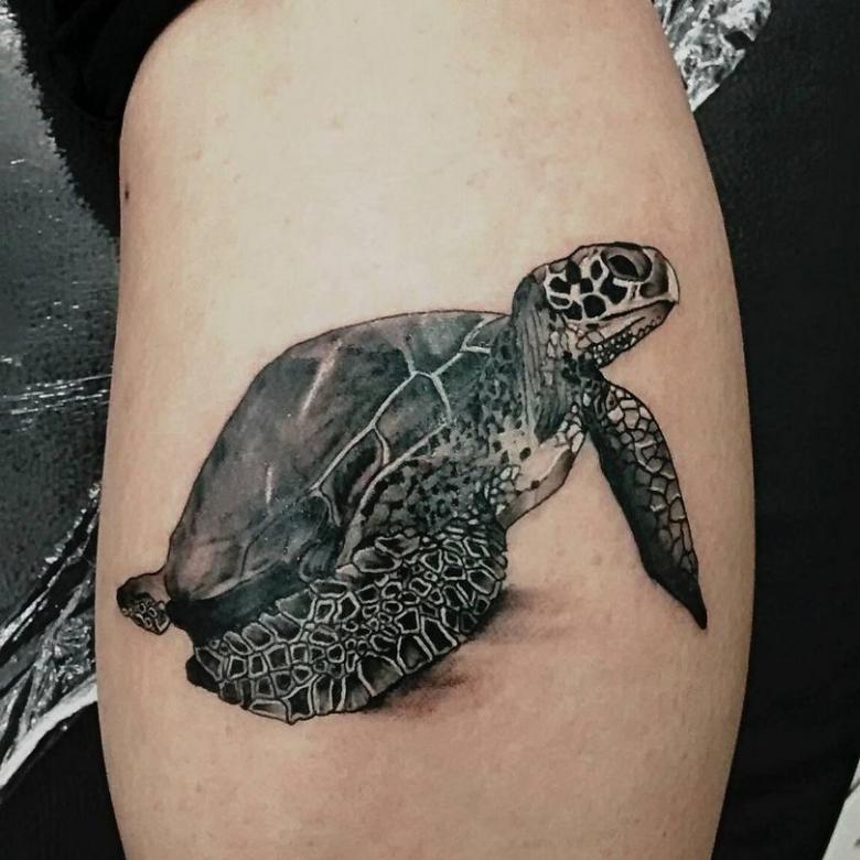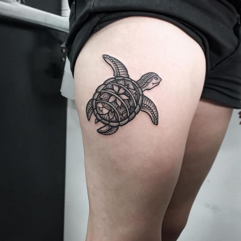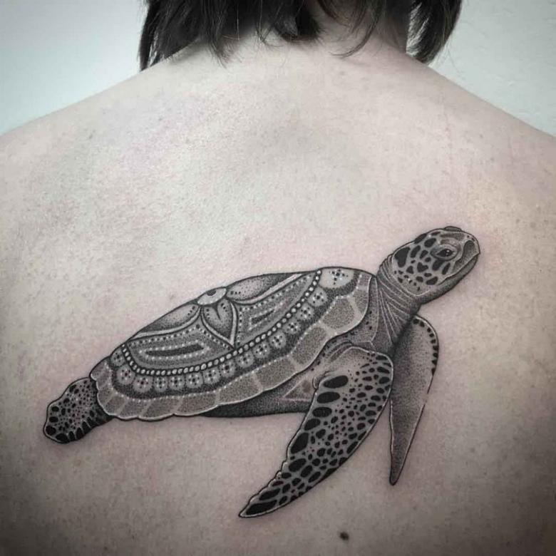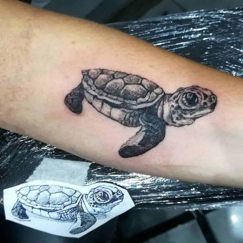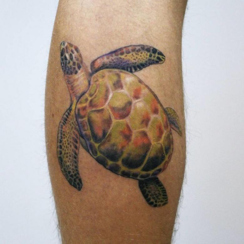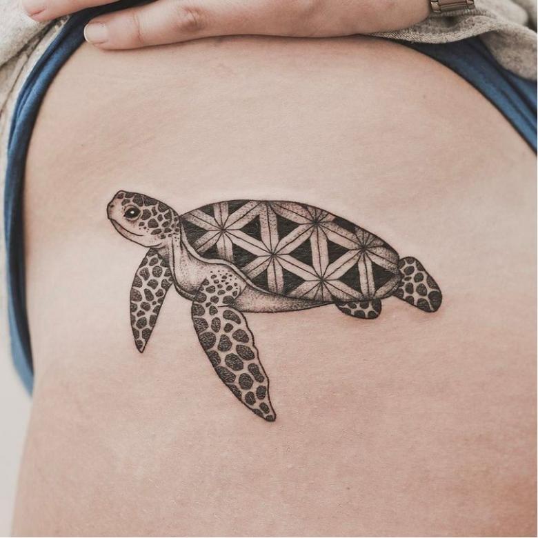 Ένα τατουάζ μιας χελώνας με ένα καβούκι διακοσμημένο με στυλιστικά και γεωμετρικά μοτίβα φαίνεται επίσης υπέροχο. Η χελώνα μπορεί να λειτουργήσει ως σύμβολο εσωτερικής ελευθερίας και βραδύτητας, απεριόριστης και σοφής ηρεμίας. Το ζώο δεν έχει πουθενά να βιαστεί, το σπίτι του είναι πάντα κοντά του και το προστατεύει αξιόπιστα από τις επιθέσεις των εχθρών, οι οποίοι σε φυσικές συνθήκες δεν είναι λίγοι, αλλά δεν είναι κάθε αρπακτικό σε θέση να αντιμετωπίσει ένα σκληρό κέλυφος.