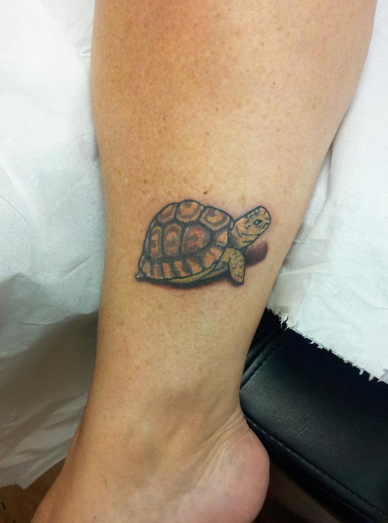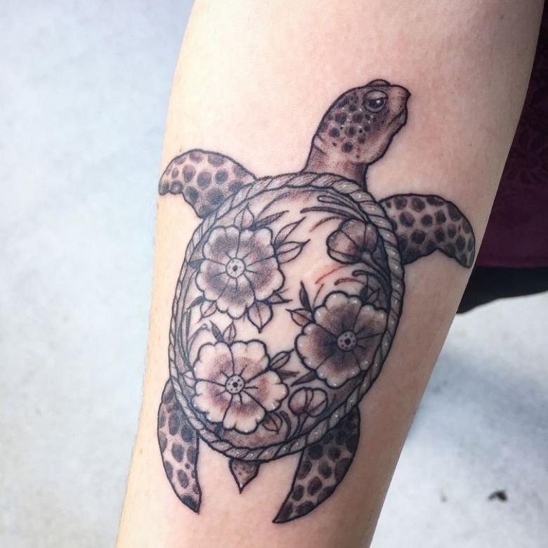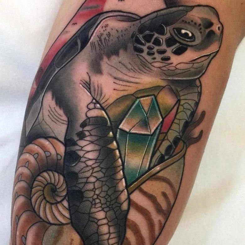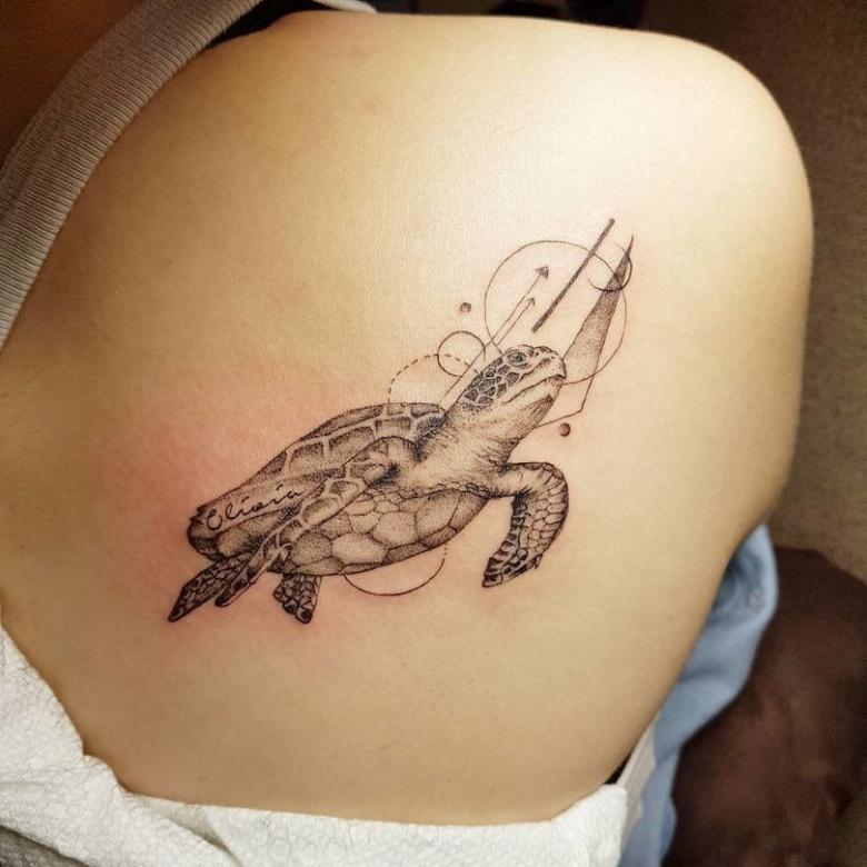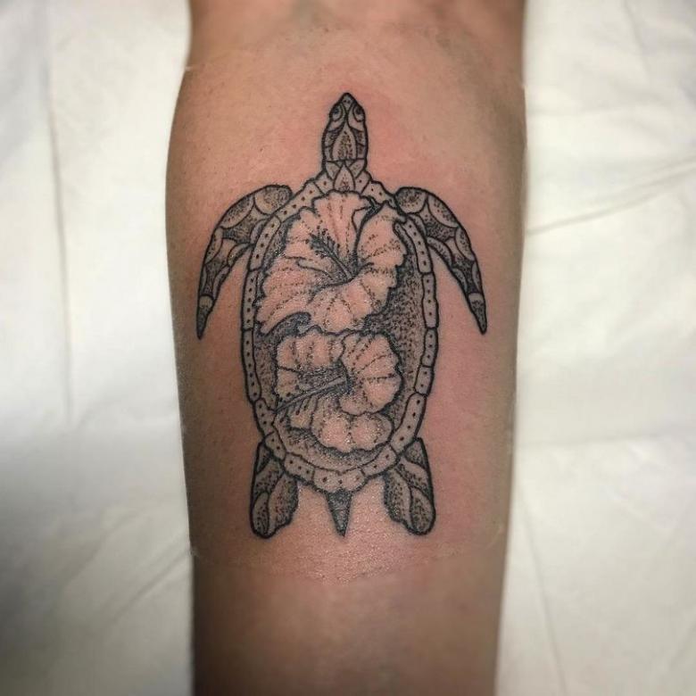 Ένα τατουάζ μιας χελώνας με ένα καβούκι διακοσμημένο με στυλιστικά και γεωμετρικά μοτίβα φαίνεται επίσης υπέροχο. Η χελώνα μπορεί να λειτουργήσει ως σύμβολο εσωτερικής ελευθερίας και βραδύτητας, απεριόριστης και σοφής ηρεμίας. Το ζώο δεν έχει πουθενά να βιαστεί, το σπίτι του είναι πάντα κοντά του και το προστατεύει αξιόπιστα από τις επιθέσεις των εχθρών, οι οποίοι σε φυσικές συνθήκες δεν είναι λίγοι, αλλά δεν είναι κάθε αρπακτικό σε θέση να αντιμετωπίσει ένα σκληρό κέλυφος.