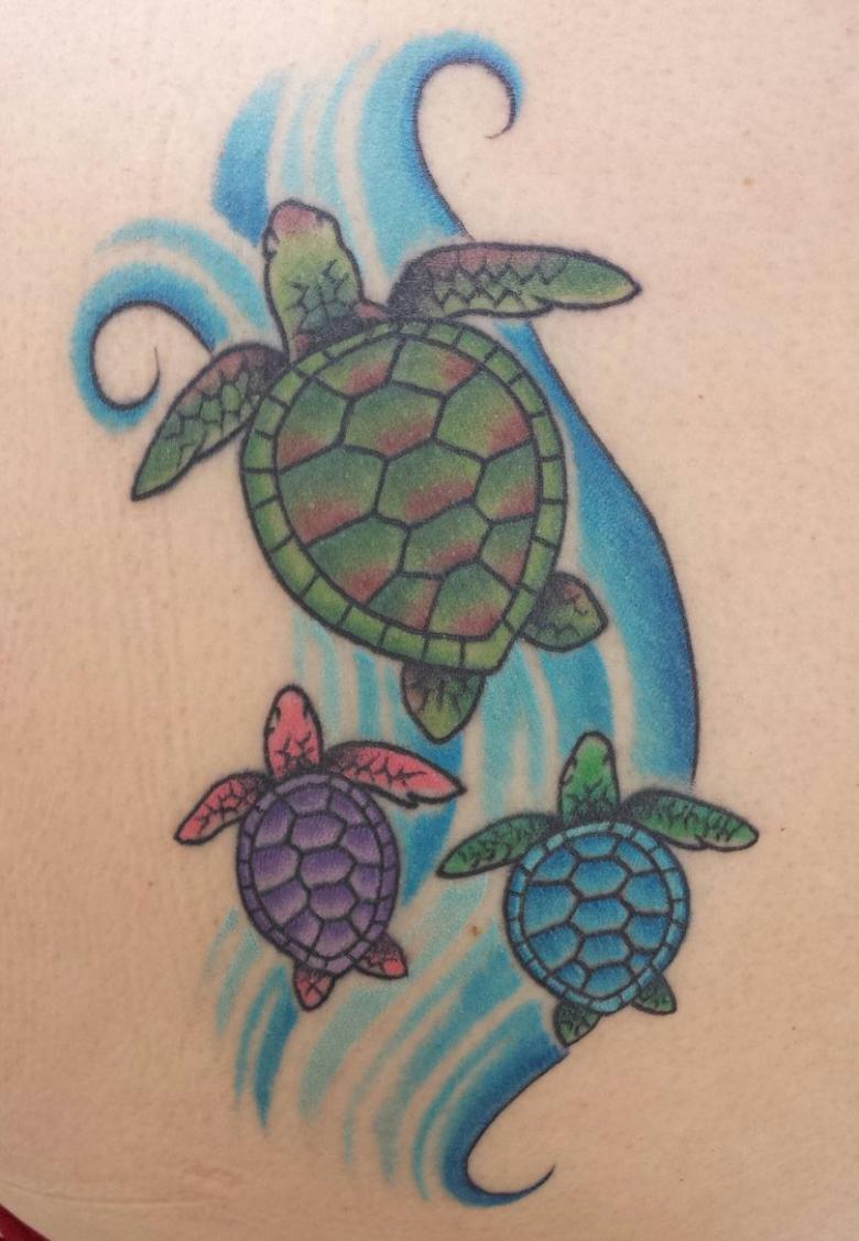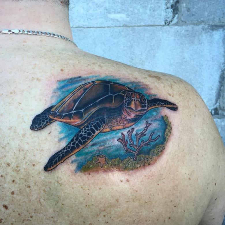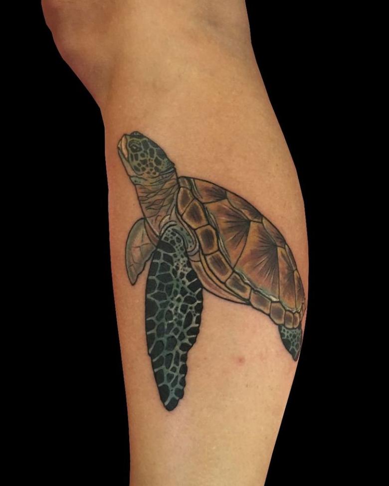 - Νατουραλιστικές εικόνες. Η πιο συνηθισμένη ιδέα τατουάζ που χρησιμοποιείται είναι αυτή μιας χελώνας που κολυμπάει στον ανοιχτό ωκεανό, αλλά θα μπορούσε επίσης να είναι μια μικρή χελώνα που στοχεύει στο νερό,