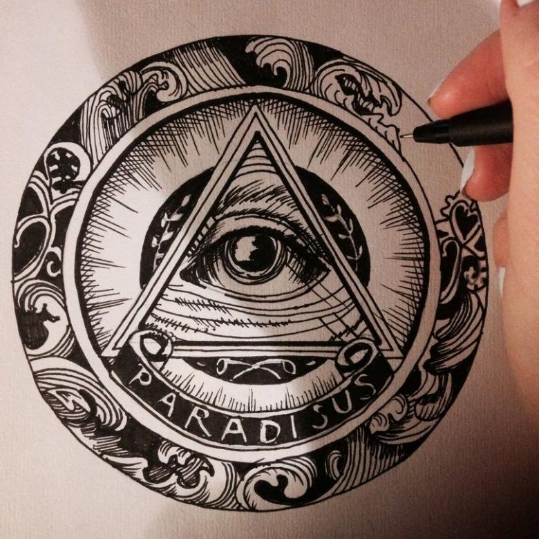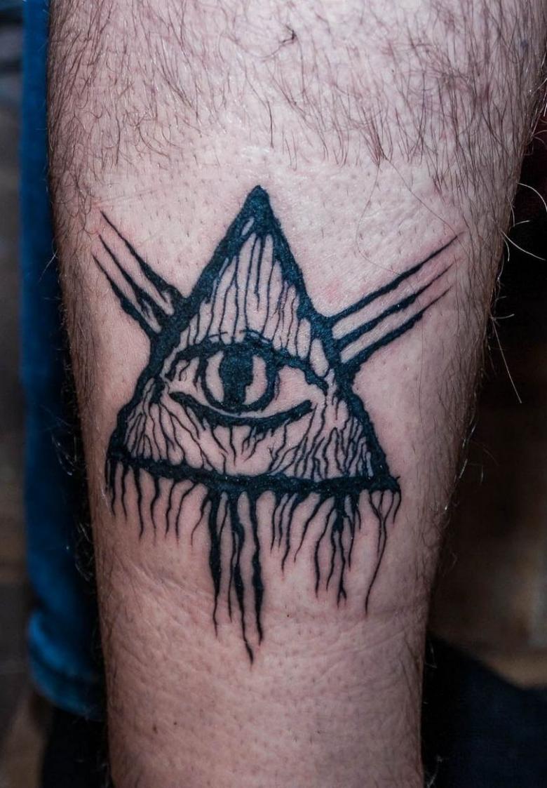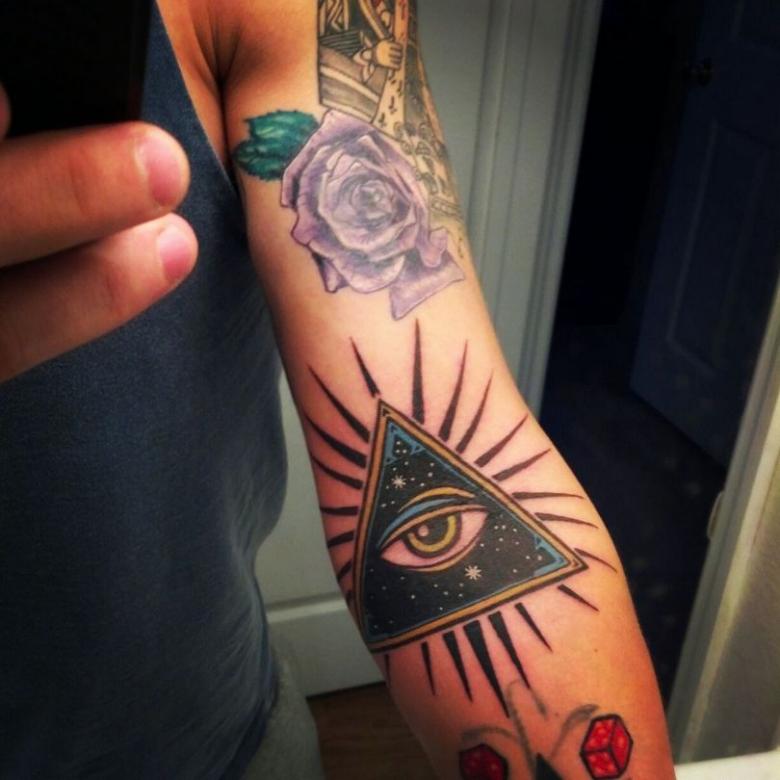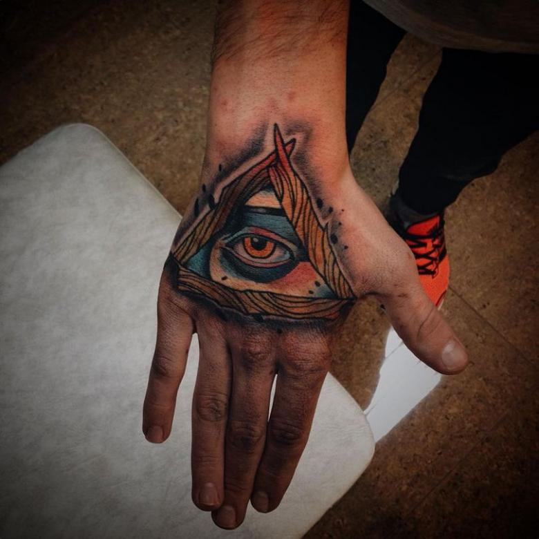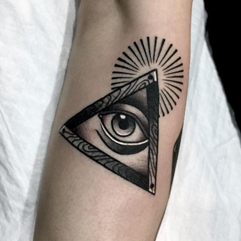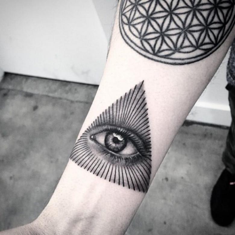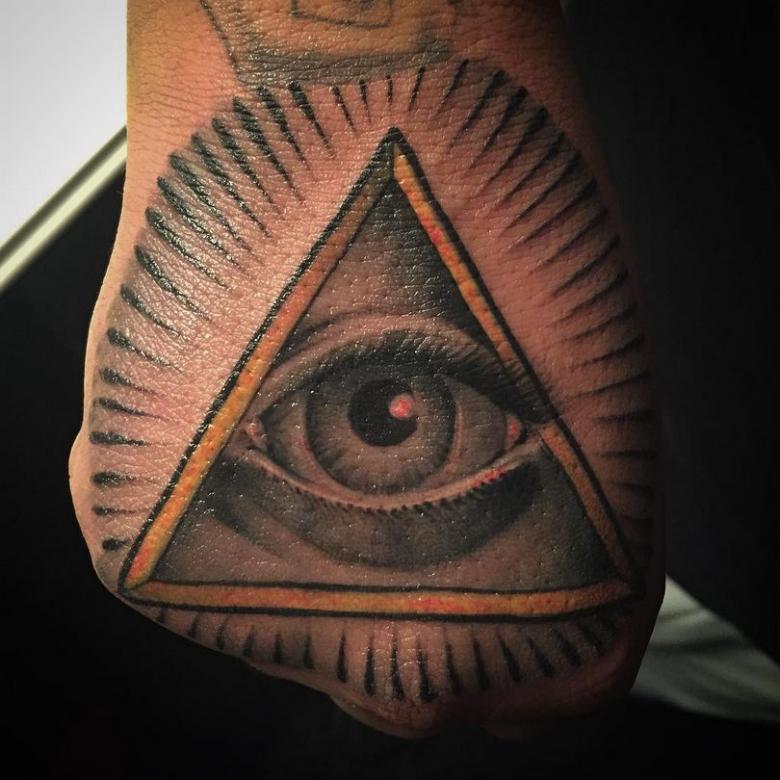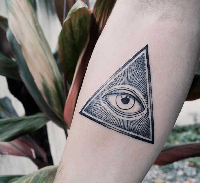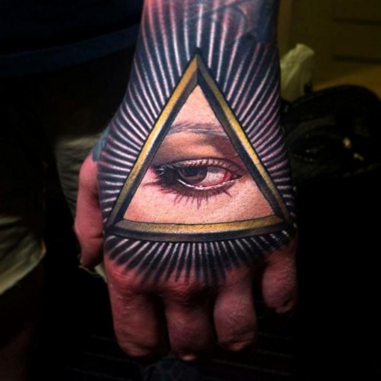 Τατουάζ Illuminati - ενδιαφέροντα σκίτσα, το νόημα του ματιού σε ένα τρίγωνο και το νόημα των γύρω στοιχείων, θέσεις στο χέρι, αντιβράχιο, καρπό