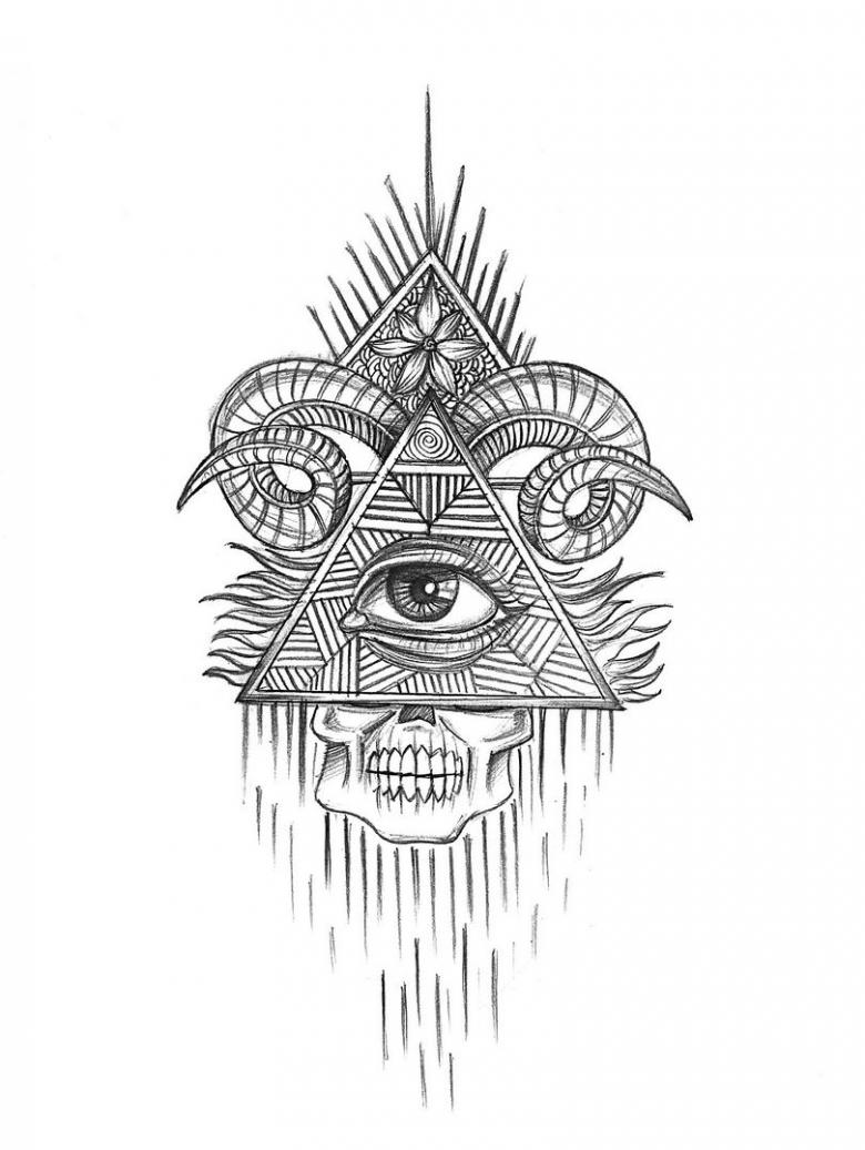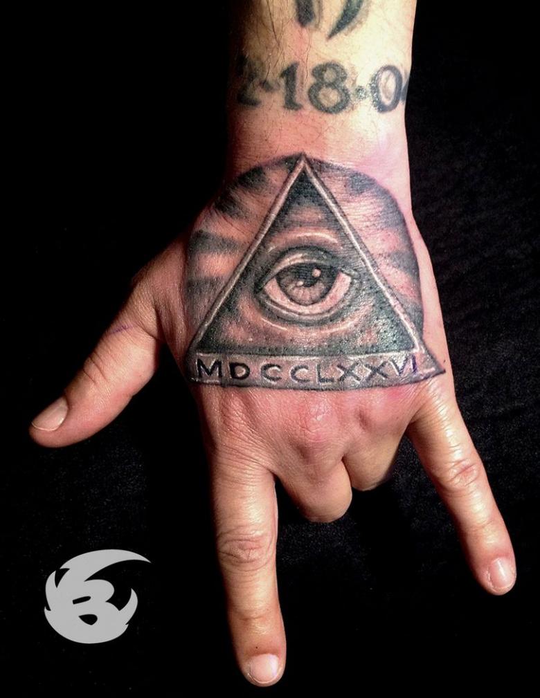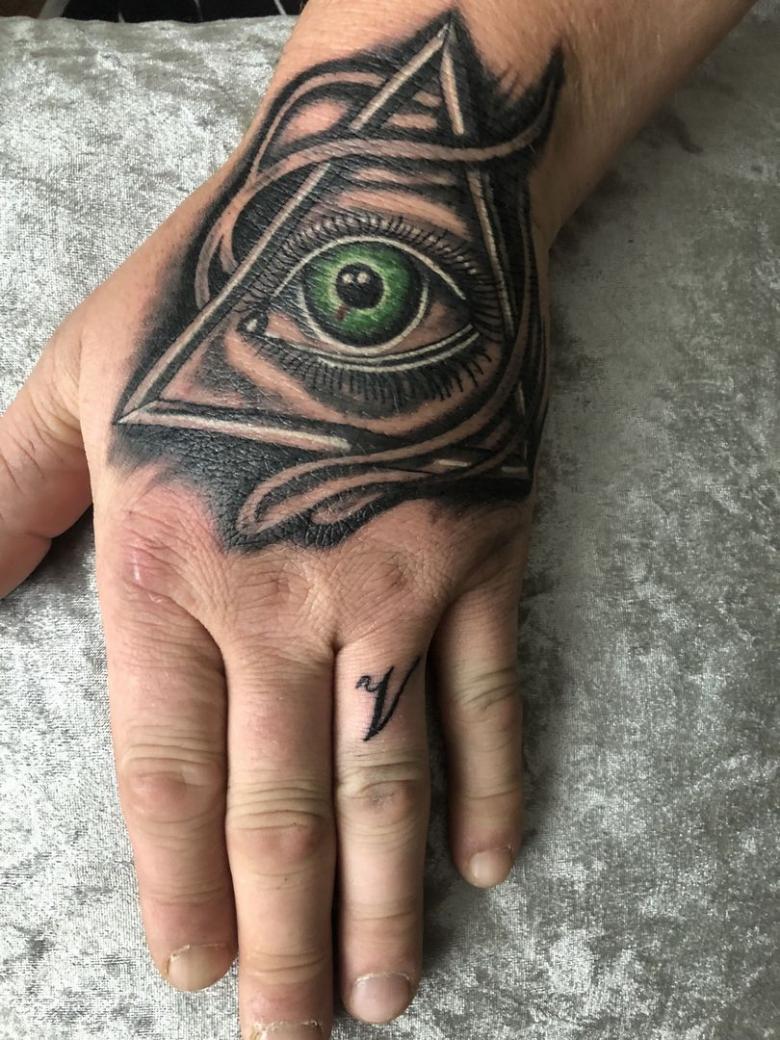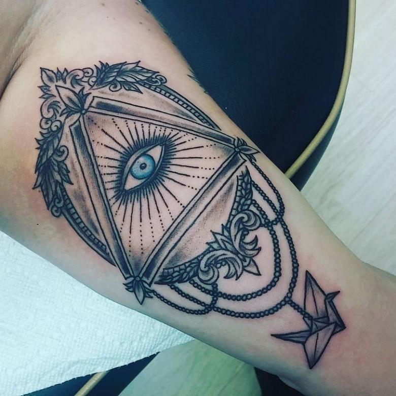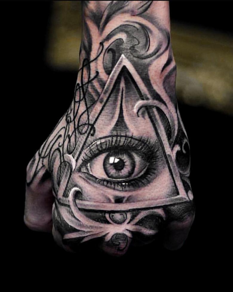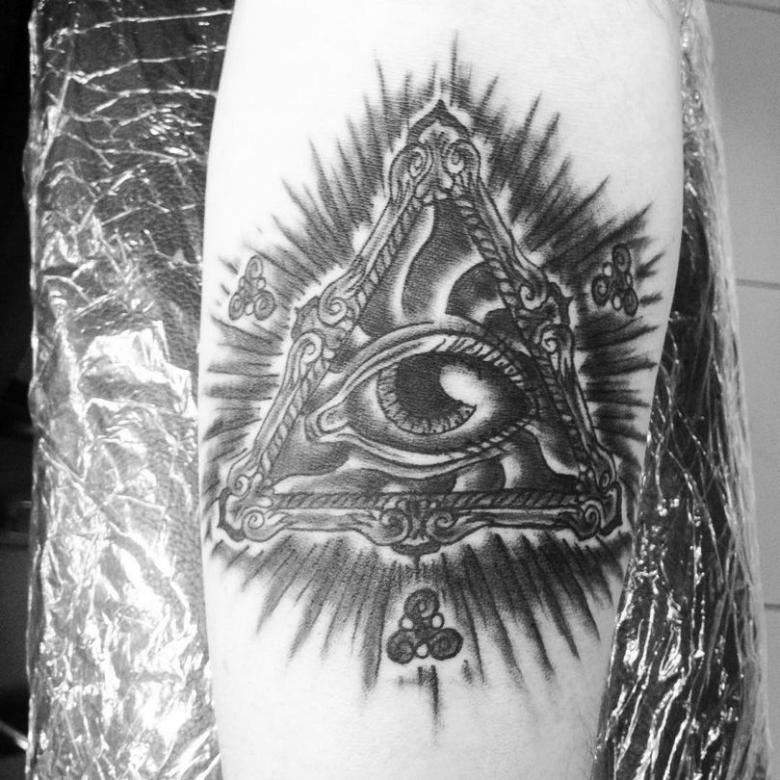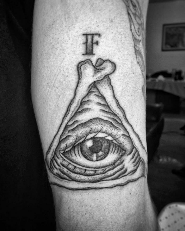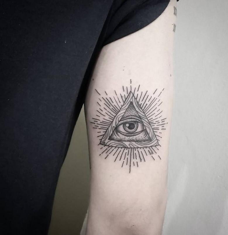 Τατουάζ Illuminati - ενδιαφέροντα σκίτσα, το νόημα του ματιού σε ένα τρίγωνο και το νόημα των γύρω στοιχείων, θέσεις στο χέρι, αντιβράχιο, καρπό