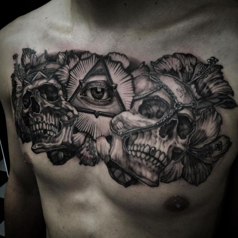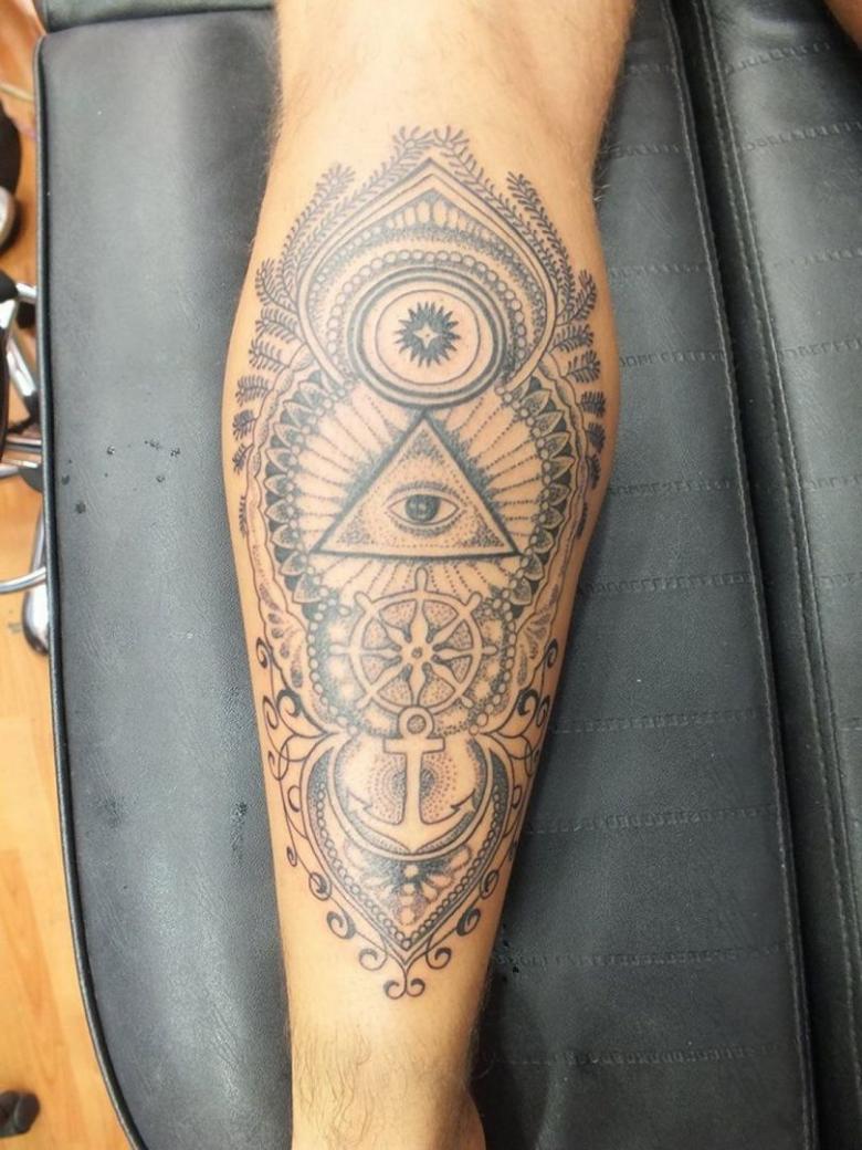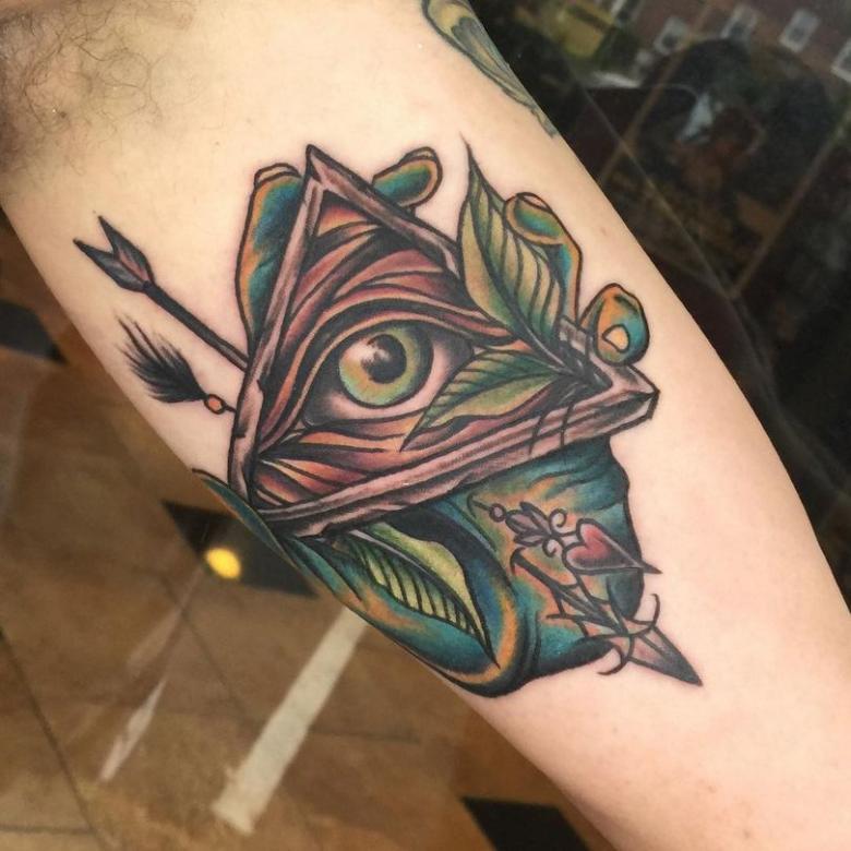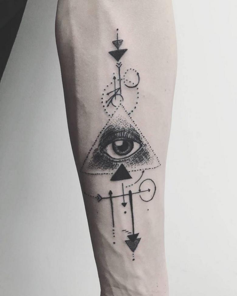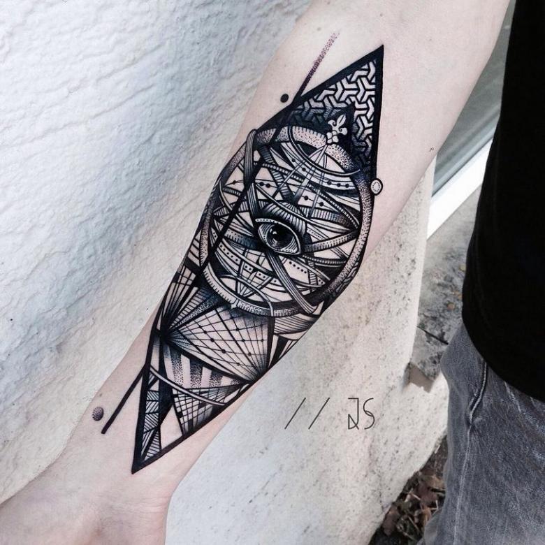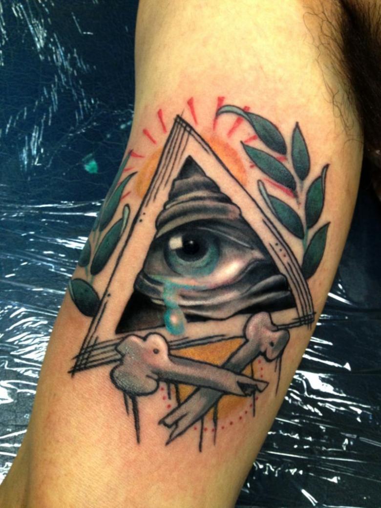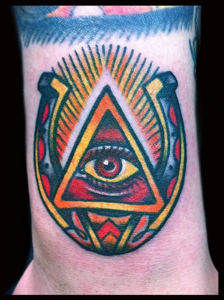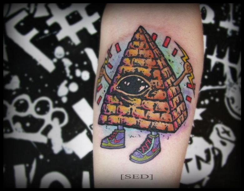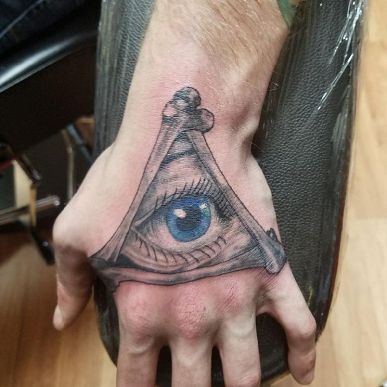 Τατουάζ Illuminati - ενδιαφέροντα σκίτσα, το νόημα του ματιού σε ένα τρίγωνο και το νόημα των γύρω στοιχείων, θέσεις στο χέρι, αντιβράχιο, καρπό