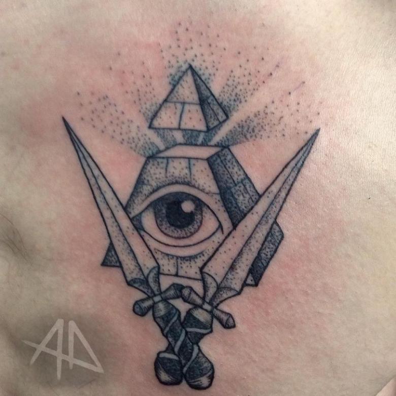 Το μυστηριώδες τατουάζ All-Seeing Eye συνδέεται συχνότερα με τον Τεκτονισμό, συγκεκριμένα με το Τάγμα των Illuminati. Τα μέλη της λάτρευαν τη Μεγάλη Μητέρα όλων των Θεών, γνωστή και ως Κυβέλη, την οποία λάτρευαν οι αρχαίοι Έλληνες. Για τους περισσότερους ανθρώπους που παραγγέλνουν ένα ασυνήθιστο τατουάζ στα σημερινά κομμωτήρια, παραμένει απλώς μια πρωτότυπη εικόνα, χωρίς καμία σχέση με τη λατρεία της αρχαίας θεάς.